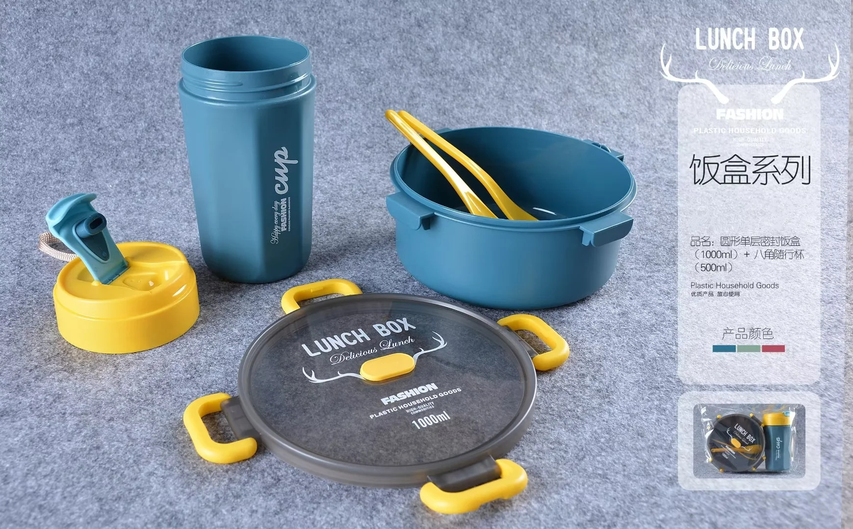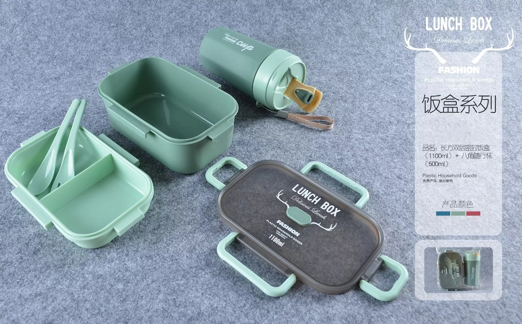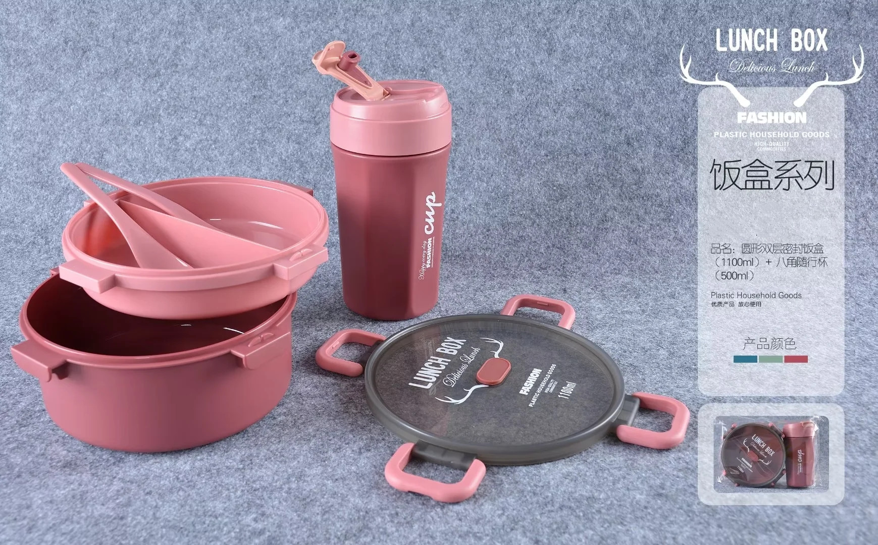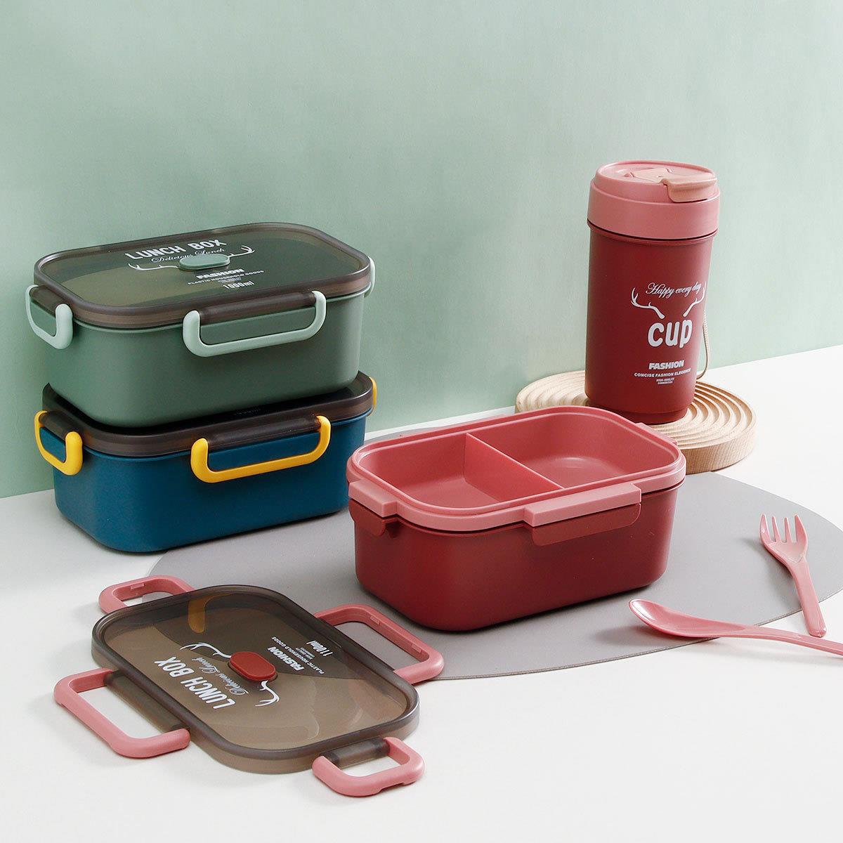 单双层方形圆形密封饭盒水杯套装微波带内格便当盒500ml圆形水杯
