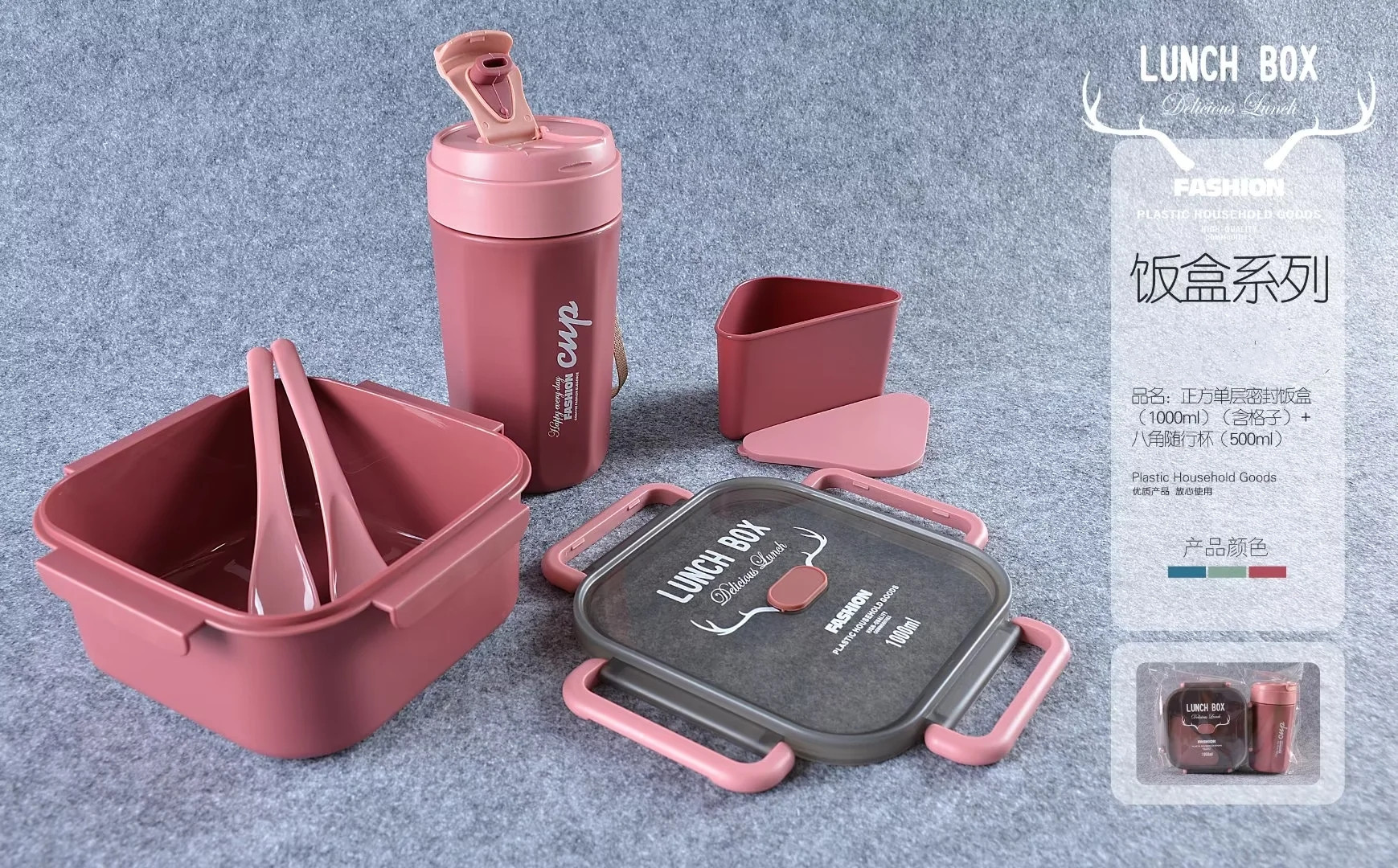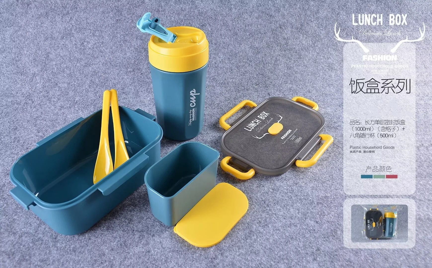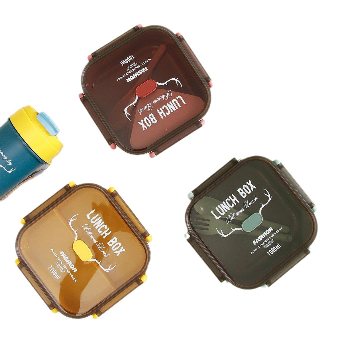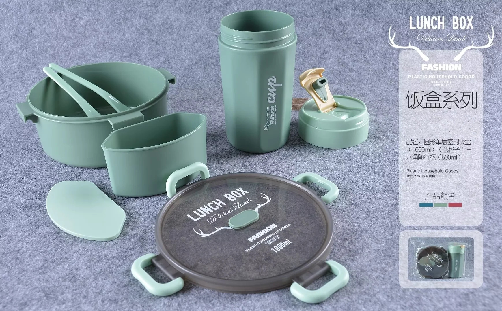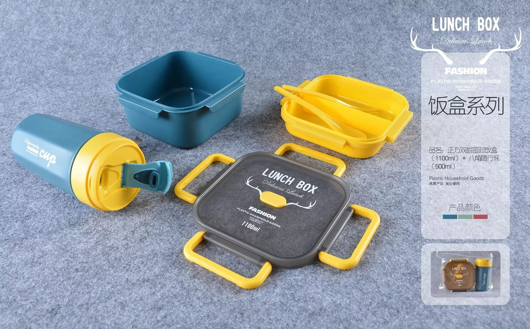 单双层方形圆形密封饭盒水杯套装微波带内格便当盒500ml圆形水杯