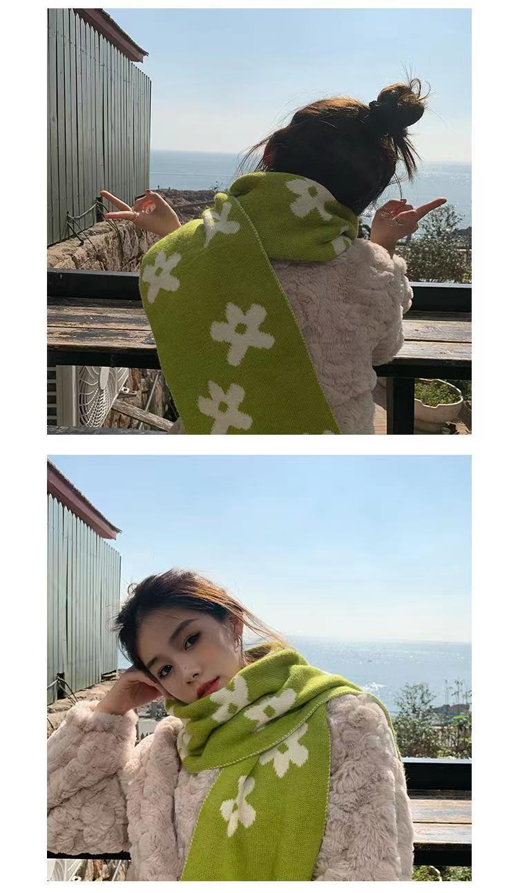 秋冬新款小花图案仿羊绒围巾女冬季韩版针织围巾日系保暖加厚围脖 投诉