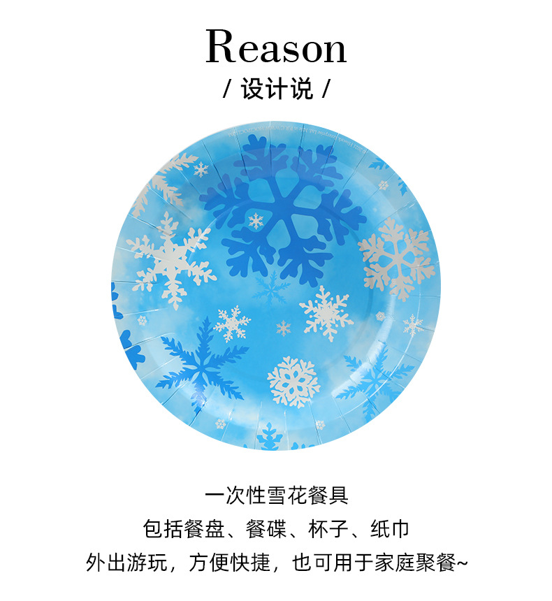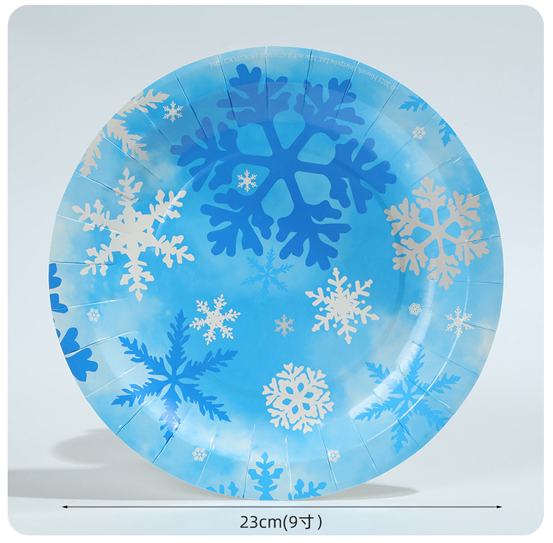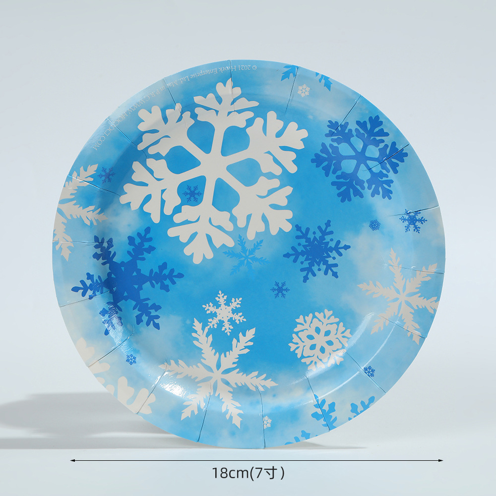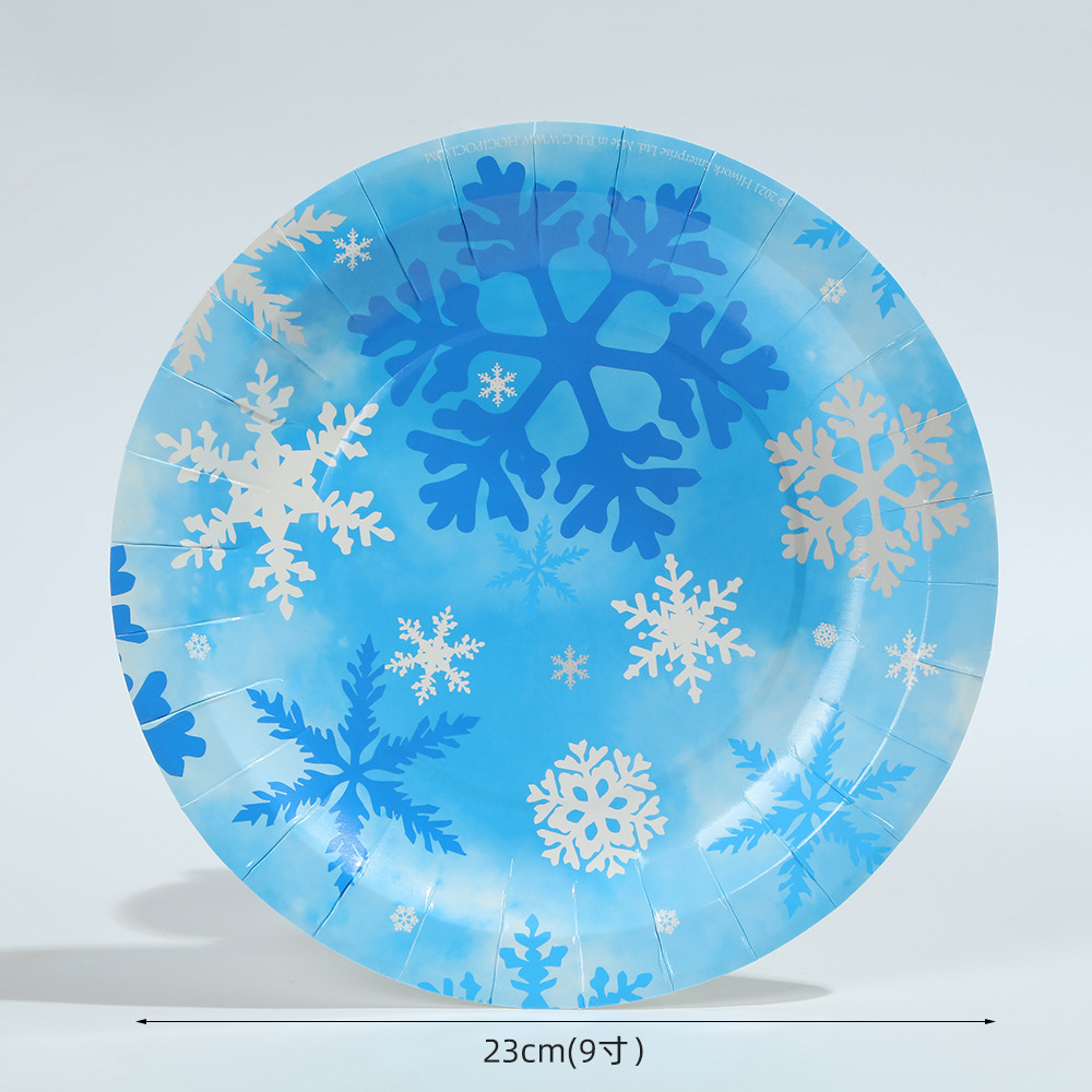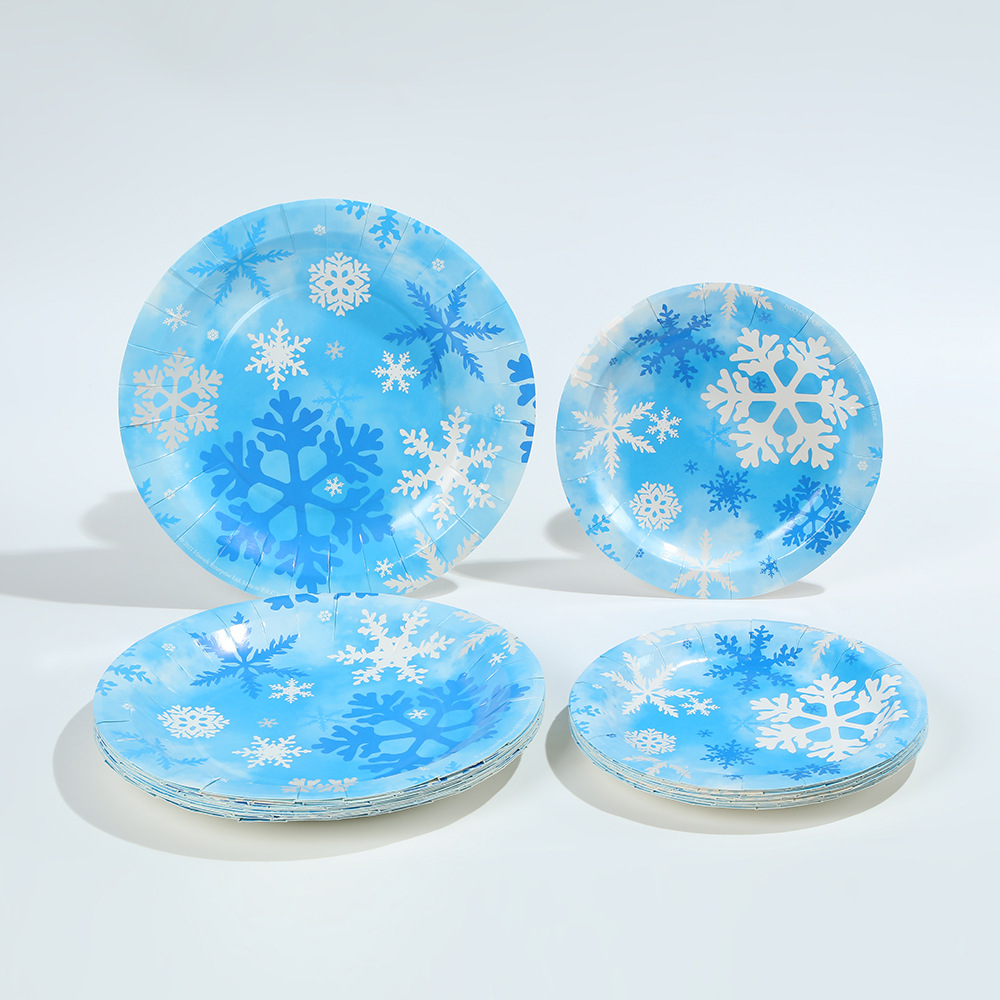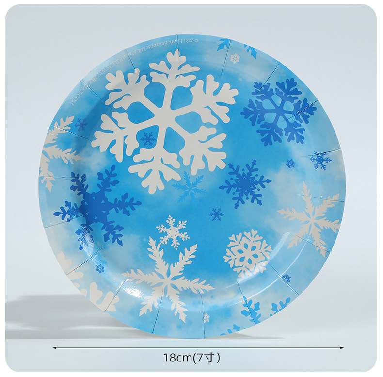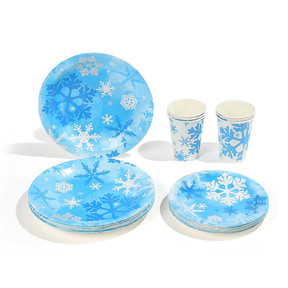 跨境冬季冰雪蓝色雪花餐具套装一次性梦幻创意派对纸盘纸杯装饰品