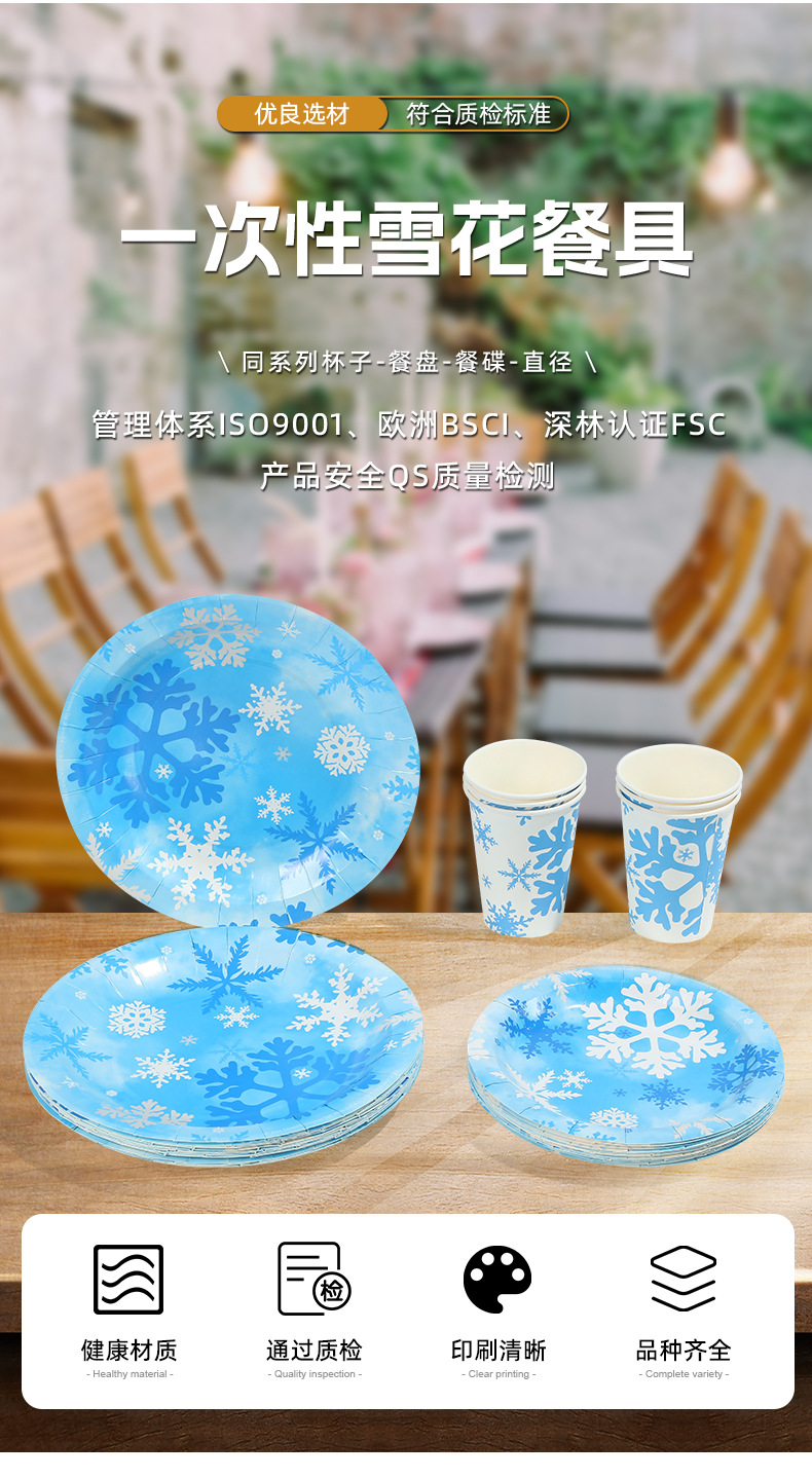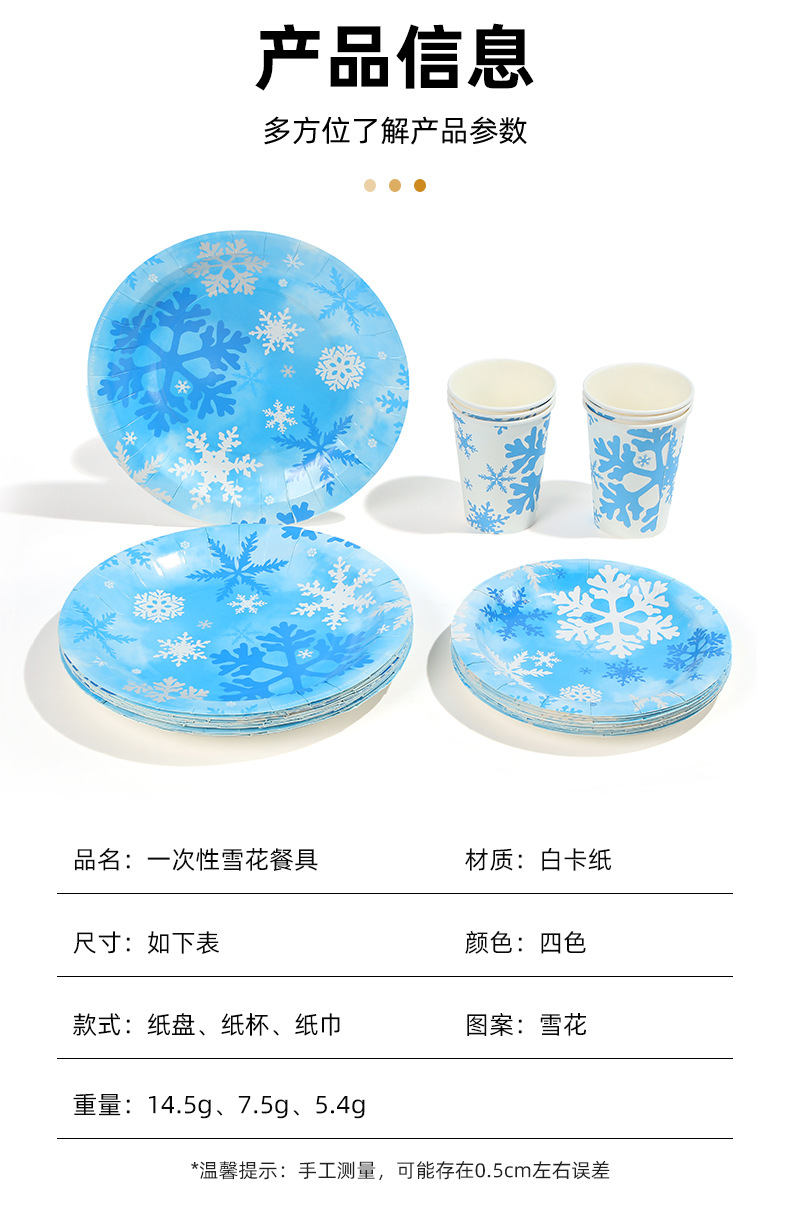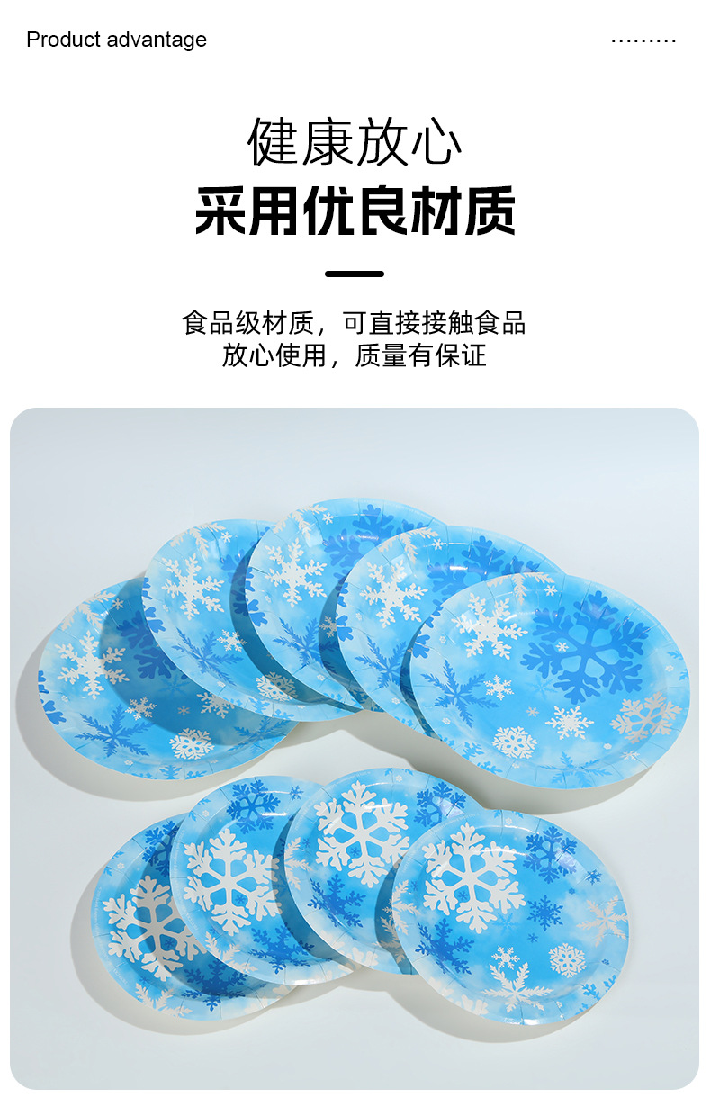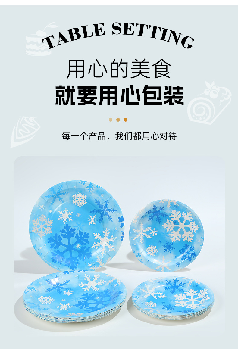 跨境冬季冰雪蓝色雪花餐具套装一次性梦幻创意派对纸盘纸杯装饰品 投诉