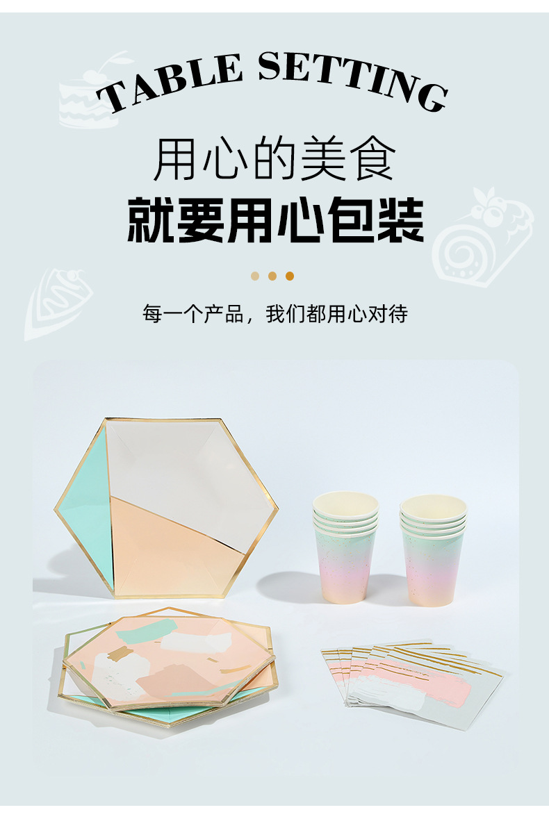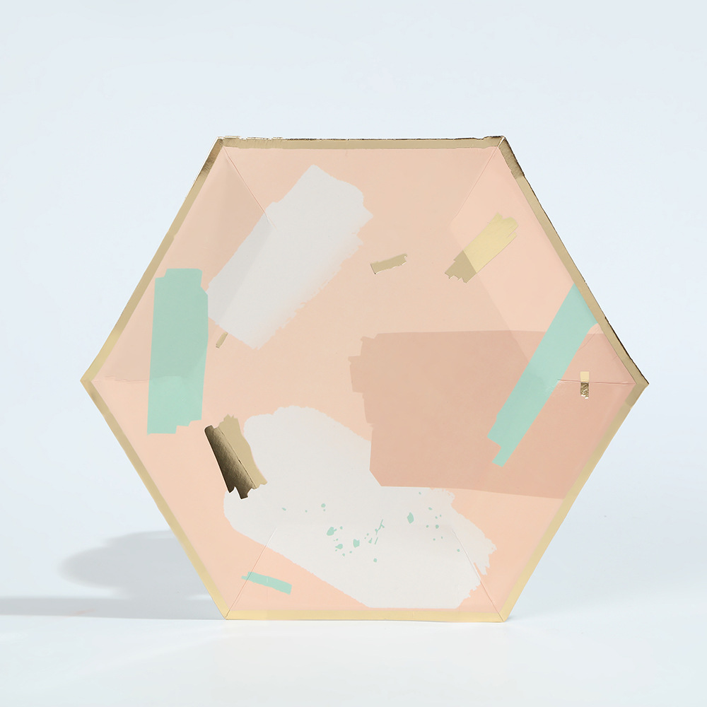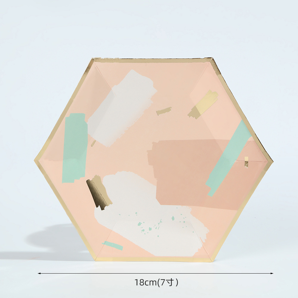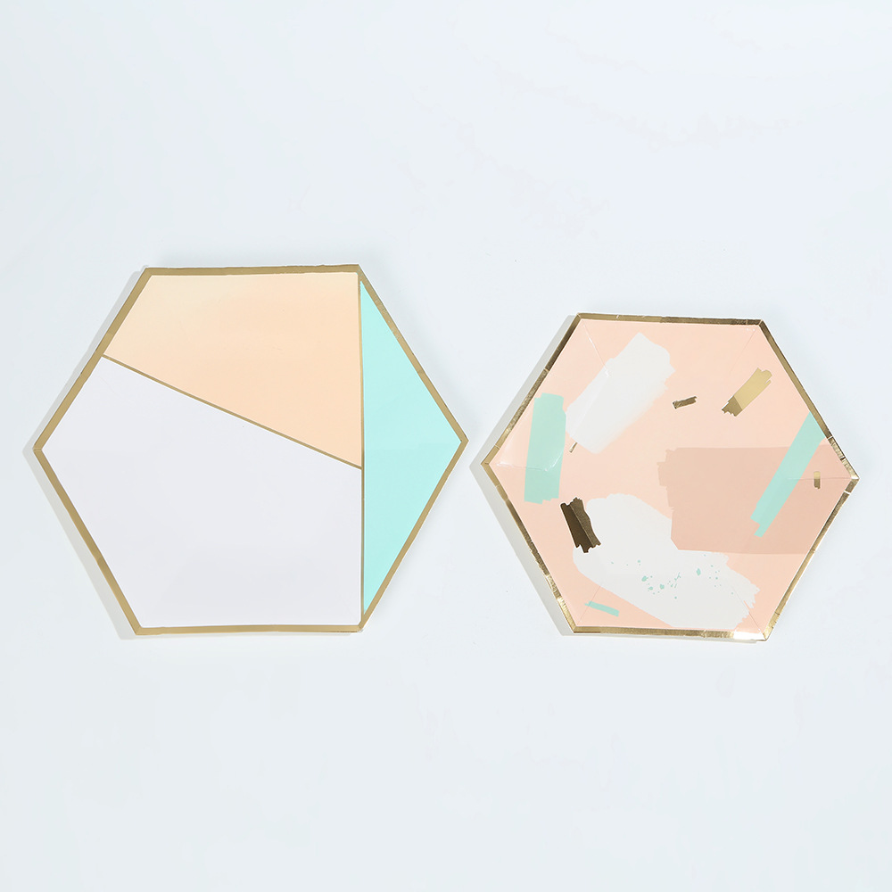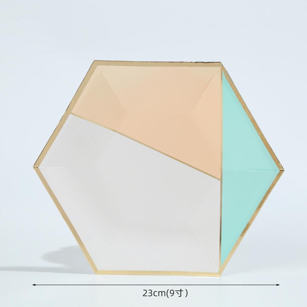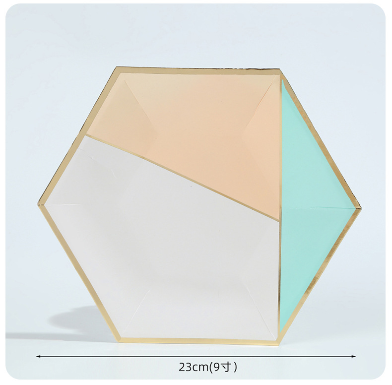 欧式轻奢几何风餐盘纸杯ins风简约一次性聚会烫金六边形餐具套装