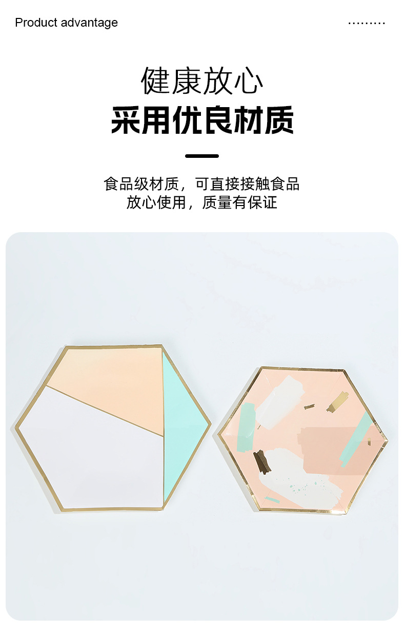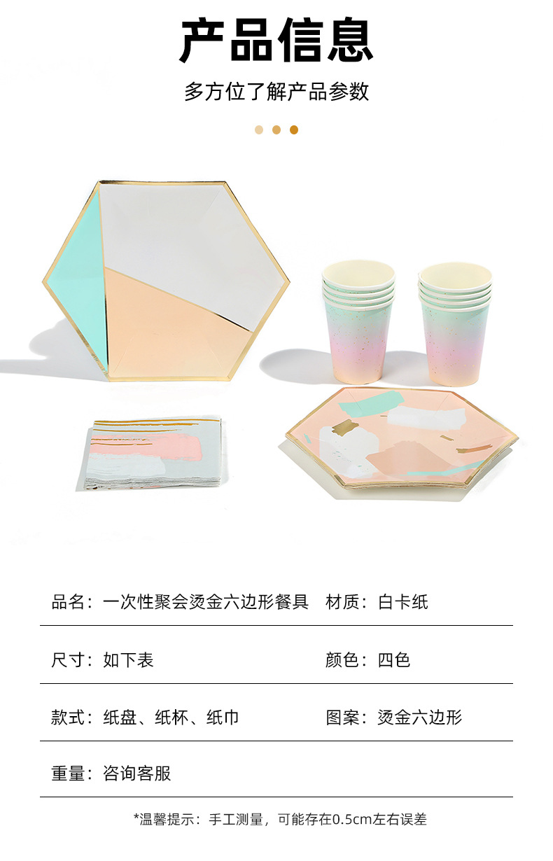 欧式轻奢几何风餐盘纸杯ins风简约一次性聚会烫金六边形餐具套装 投诉
