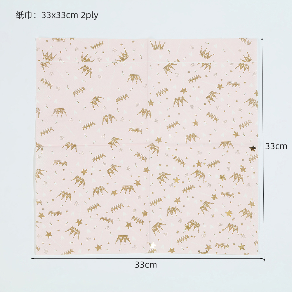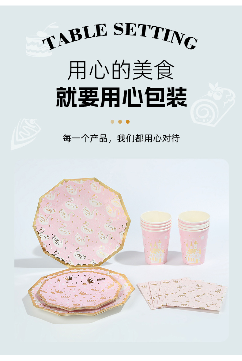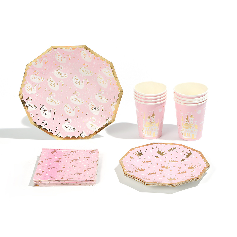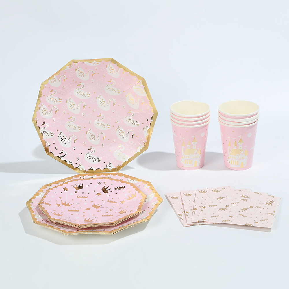 亚马逊十边形粉色城堡皇冠纸盘派对餐具生日蛋糕盘一次性纸碟套装