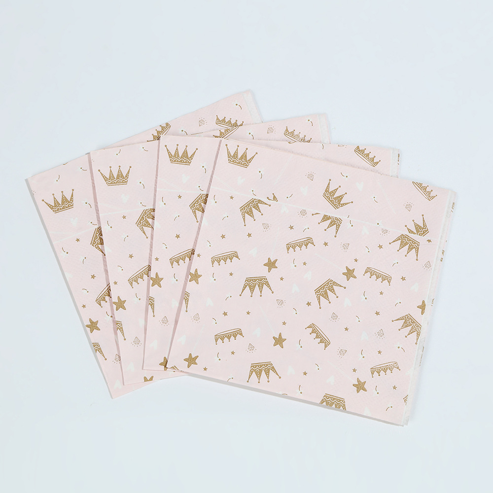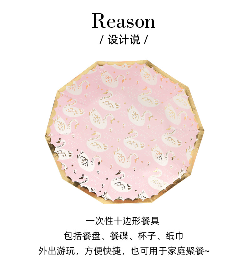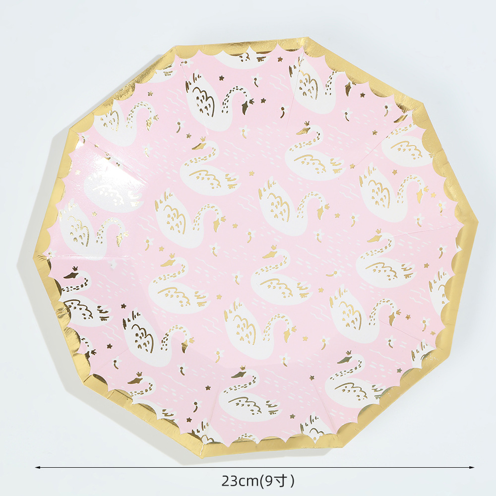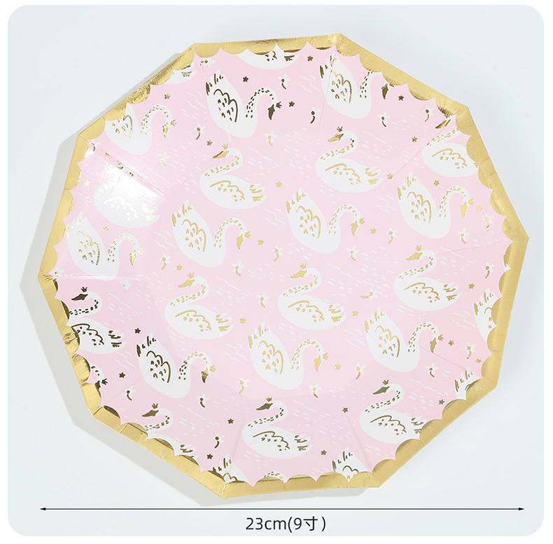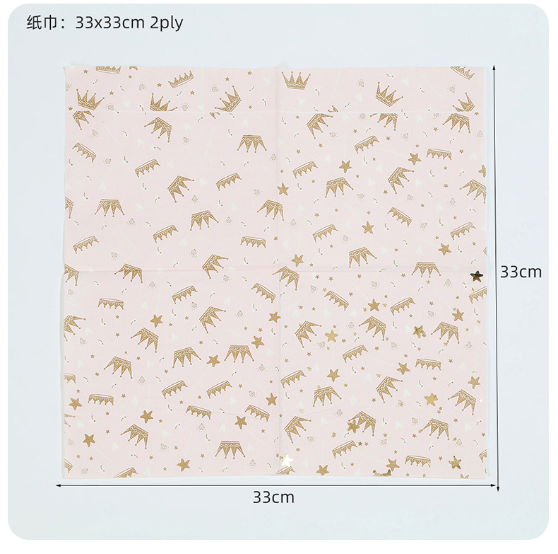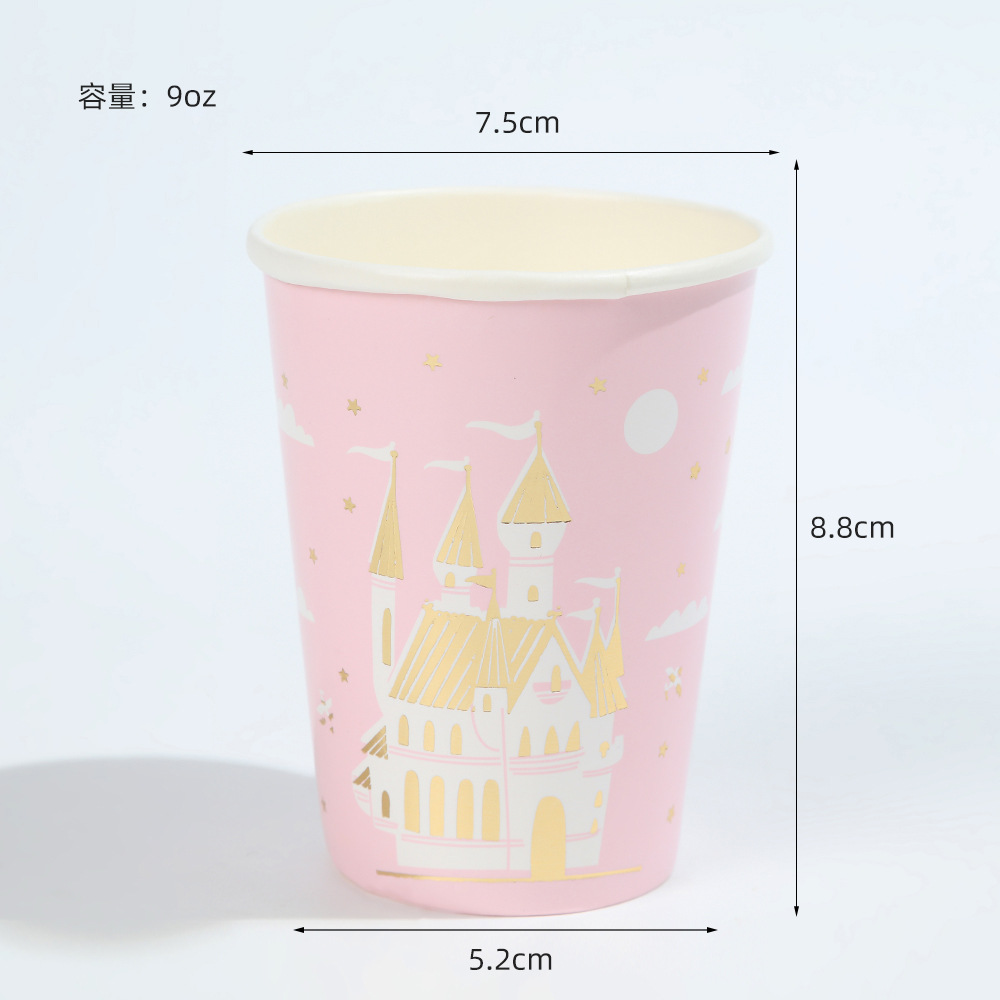 亚马逊十边形粉色城堡皇冠纸盘派对餐具生日蛋糕盘一次性纸碟套装