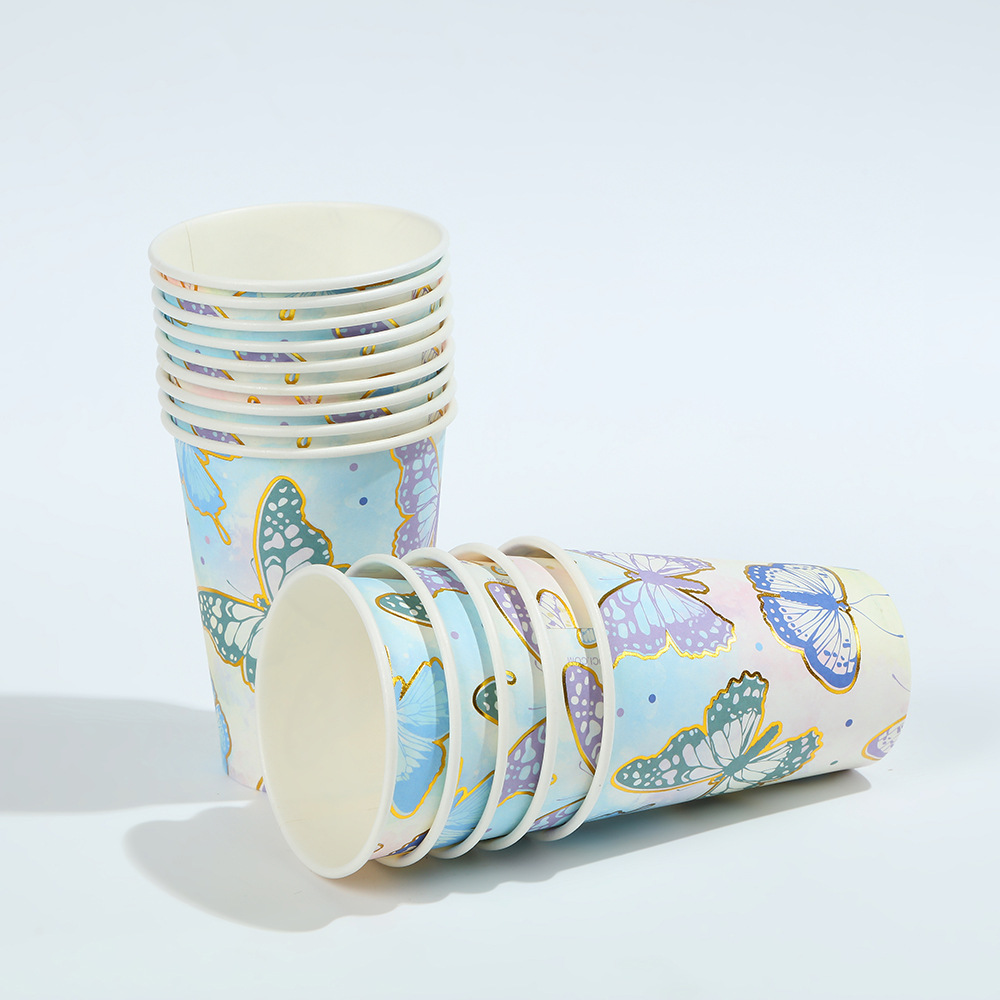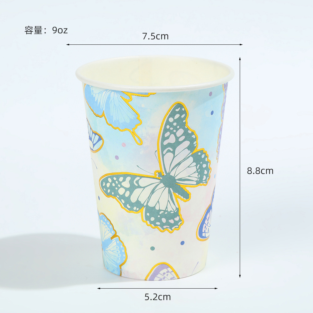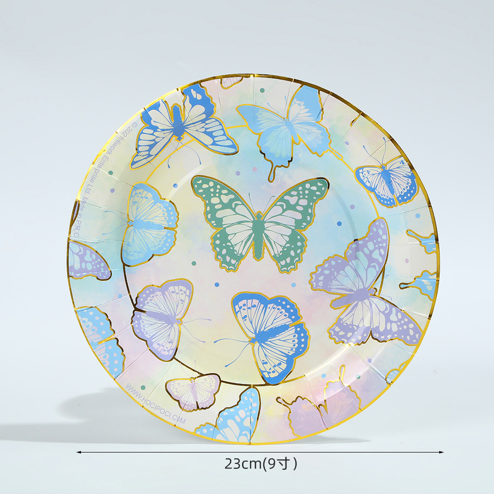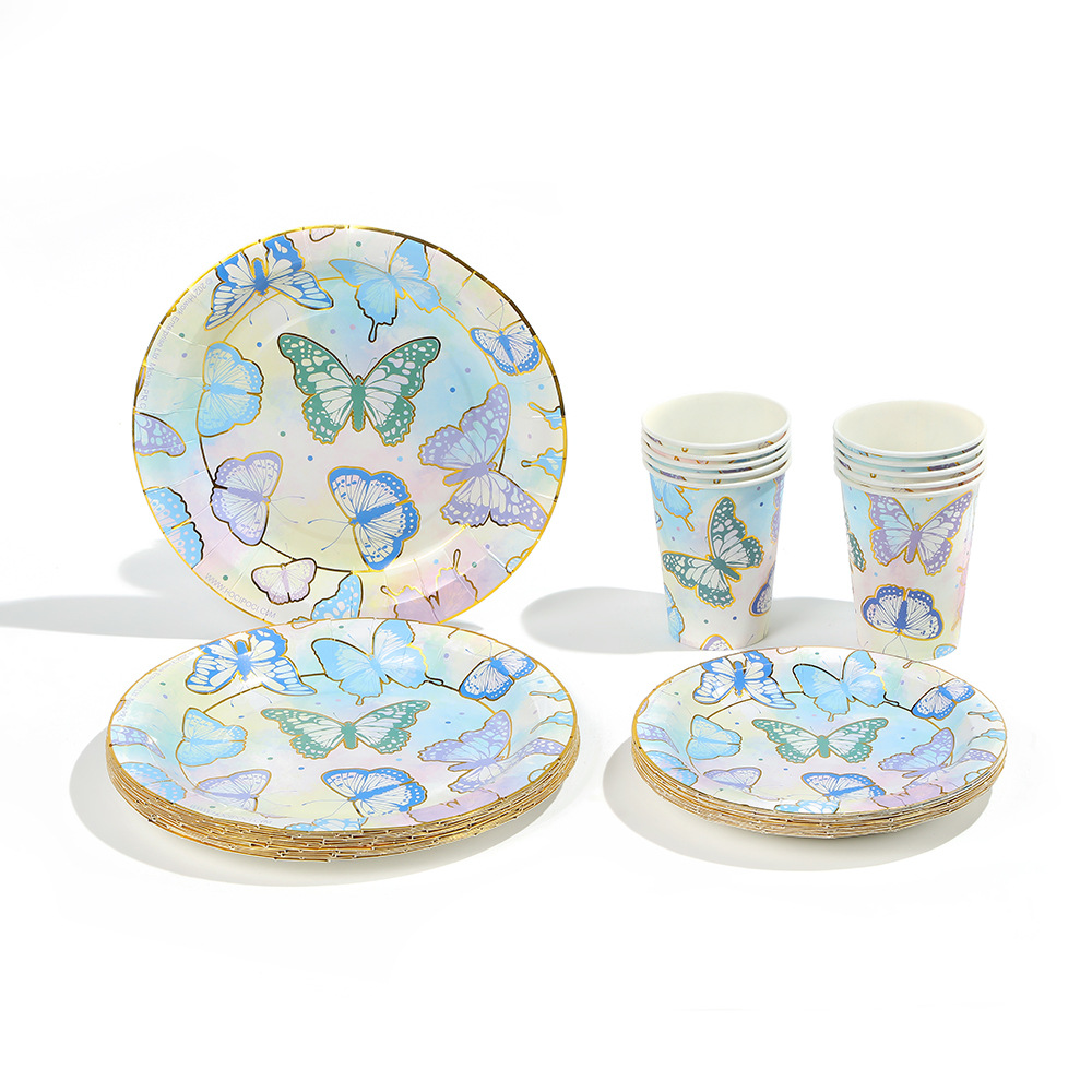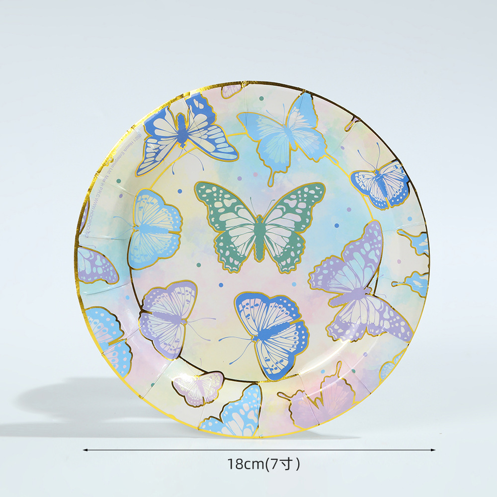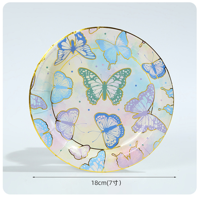 森系蝴蝶派对用品一次性生日聚会派对装饰纸盘纸杯纸巾套装批发