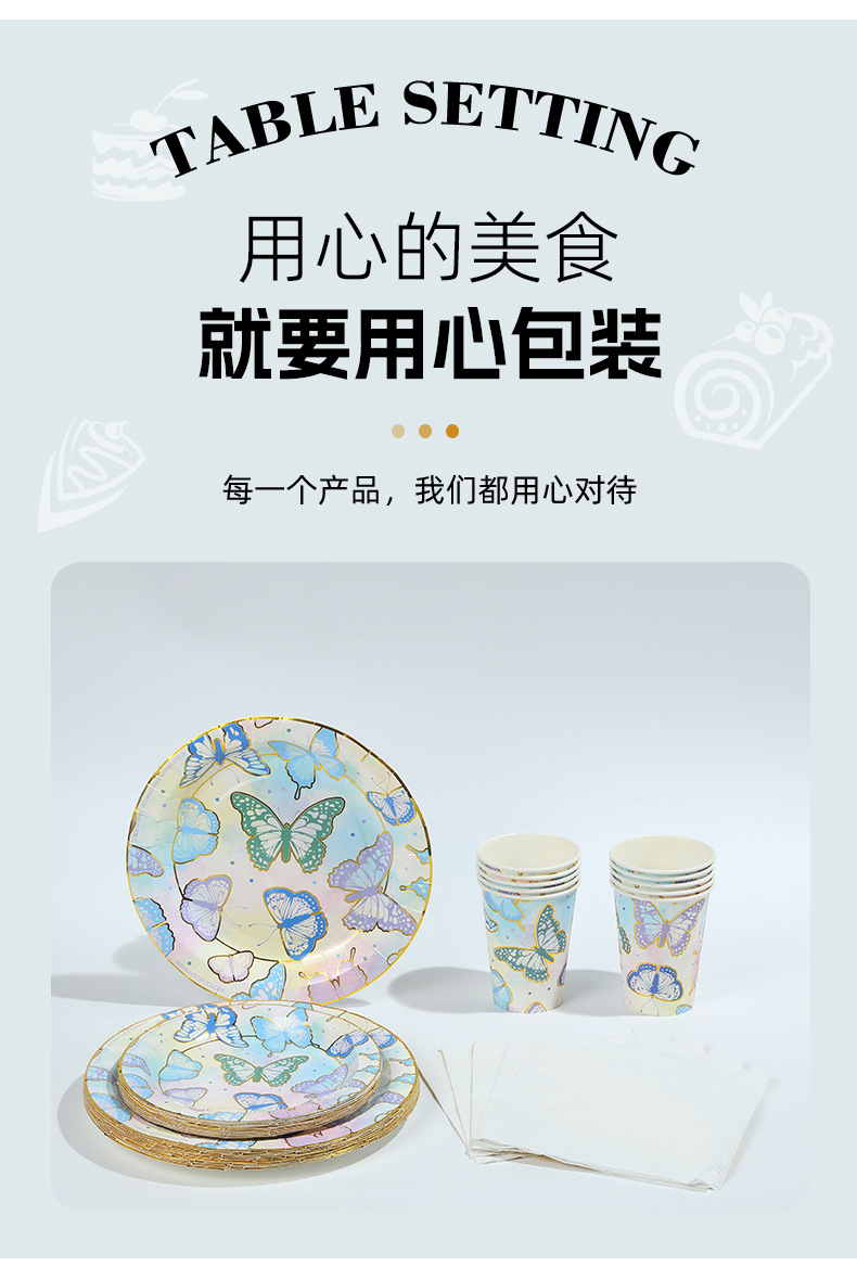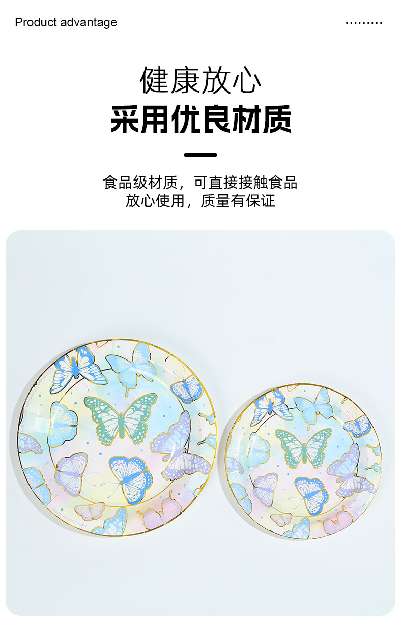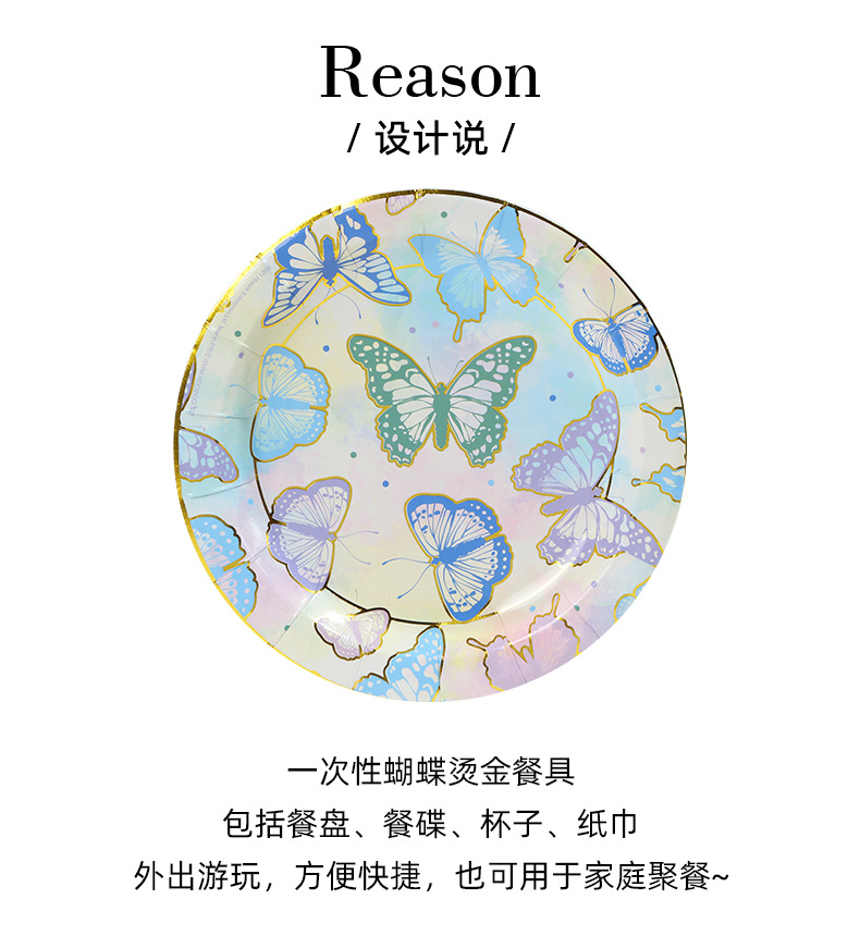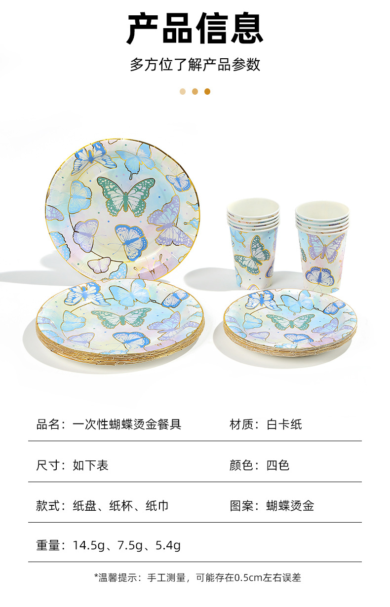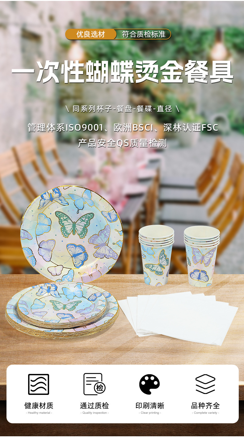 森系蝴蝶派对用品一次性生日聚会派对装饰纸盘纸杯纸巾套装批发 投诉