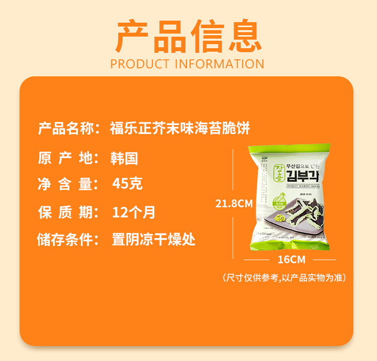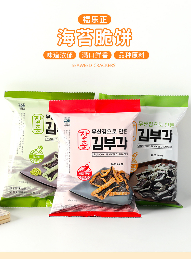 批发包邮!韩国进口手办零食 福乐正原味海苔脆饼(膨化食品)45g 投诉