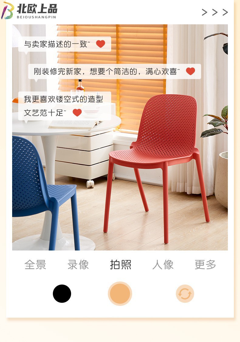 北欧塑料靠背椅现代简约酒店休闲椅家用靠背椅餐厅餐椅网眼椅美甲 投诉