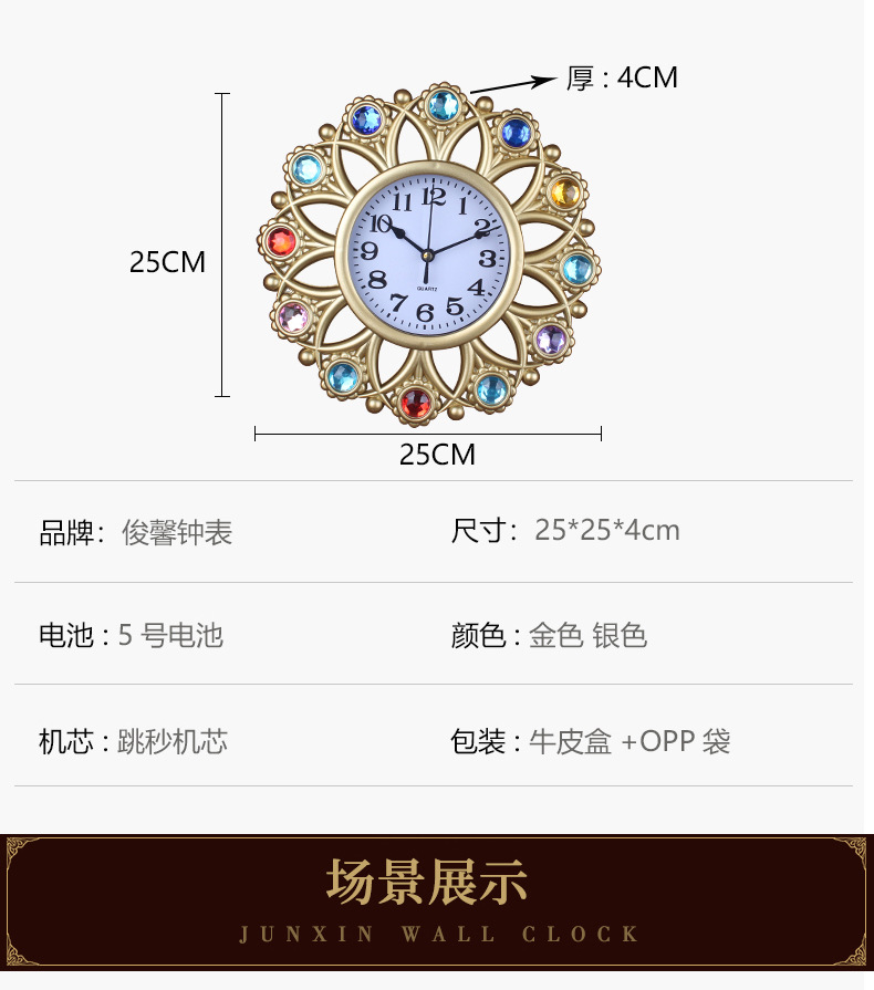 产品类别: 挂钟 品牌: 俊馨 是否进口: 否 型号: 115 是否专利货源: 否 加工定制: 是 加印LOGO: 不可以 是否双面: 单面 风格: 轻奢 外观造型: 长方形 重量: 1.5 kg/个