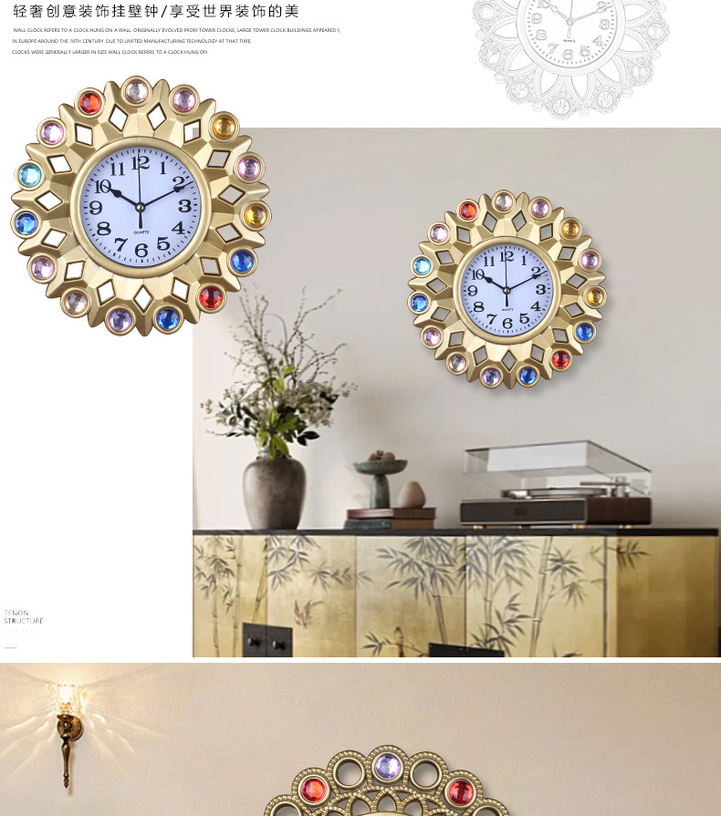 批发欧式钟表挂钟客厅静音家用简约时尚石英钟表挂墙亚马逊原工厂 English | 投诉