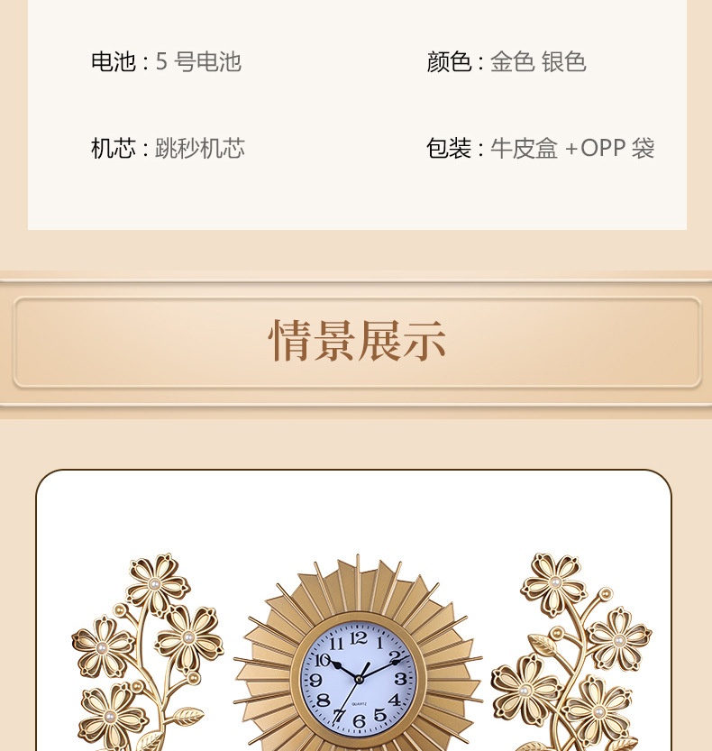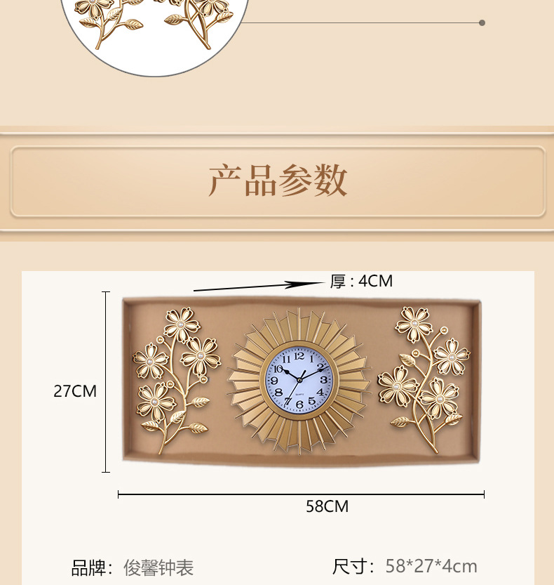 产品类别: 挂钟 品牌: 俊馨 是否进口: 否 型号: 115 是否专利货源: 否 加工定制: 是 加印LOGO: 不可以 是否双面: 单面 风格: 欧式 外观造型: 长方形 重量: 2.0 kg/套