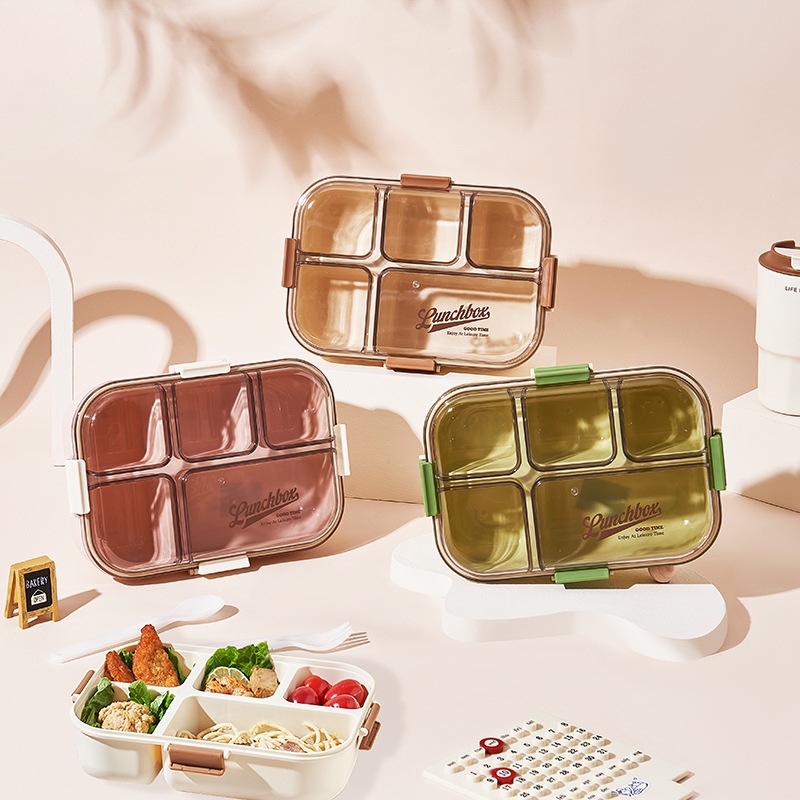五分格密封便当饭盒(含勺叉)