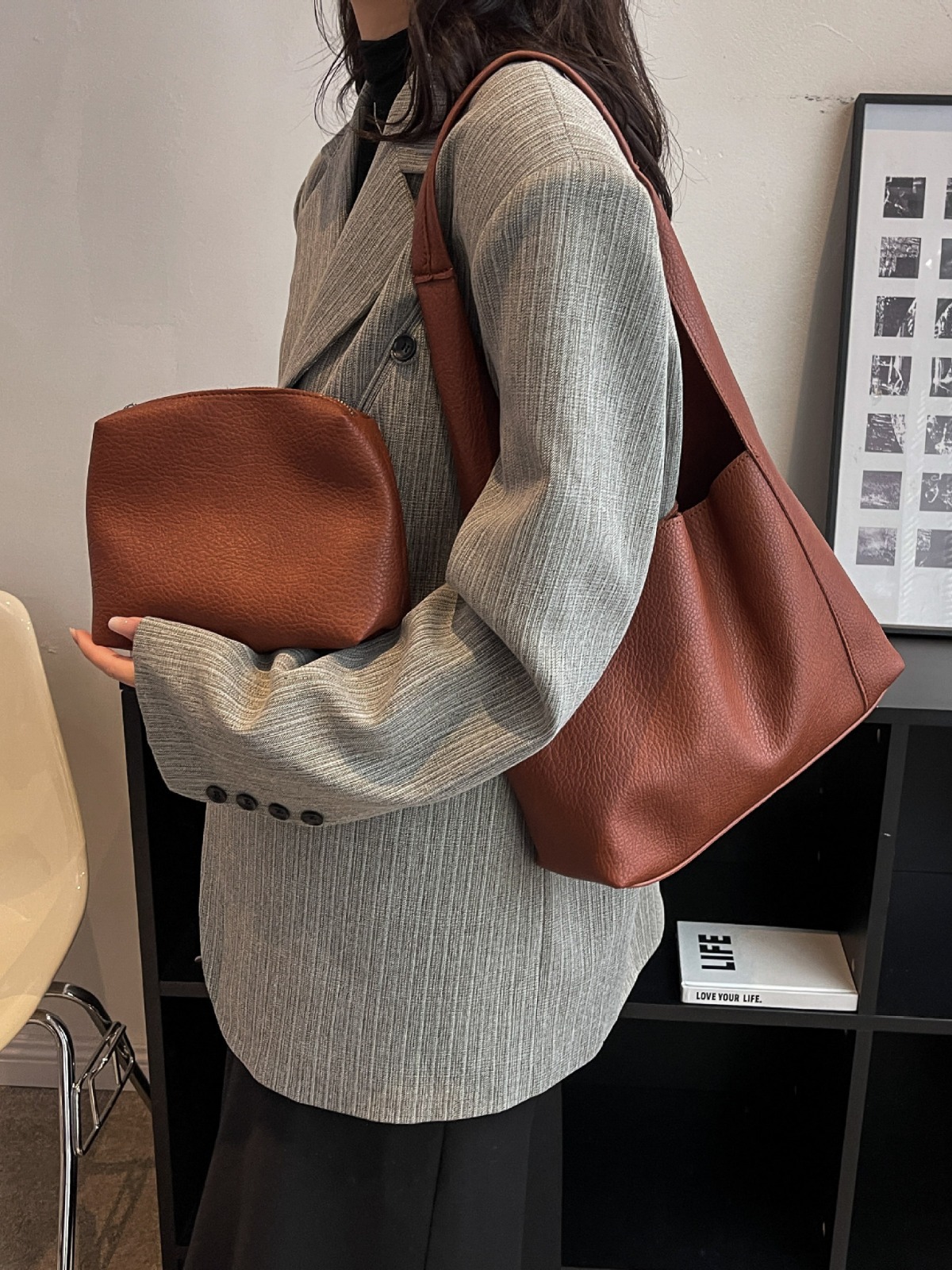简约托特包新款小众宽松单肩包包女跨境设计感高级秋冬手提包包女