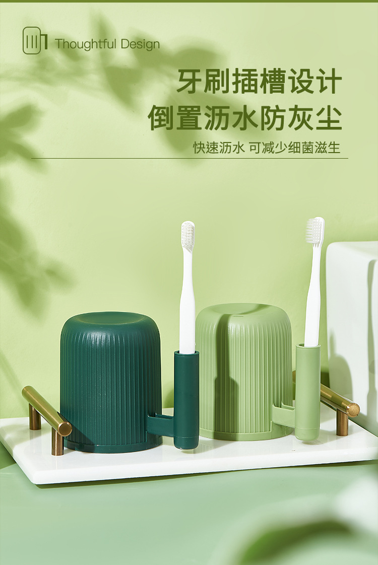 厂家直供纯色轻奢竖条纹牙刷杯倒置插牙刷学生宿舍漱口杯便携刷牙 投诉