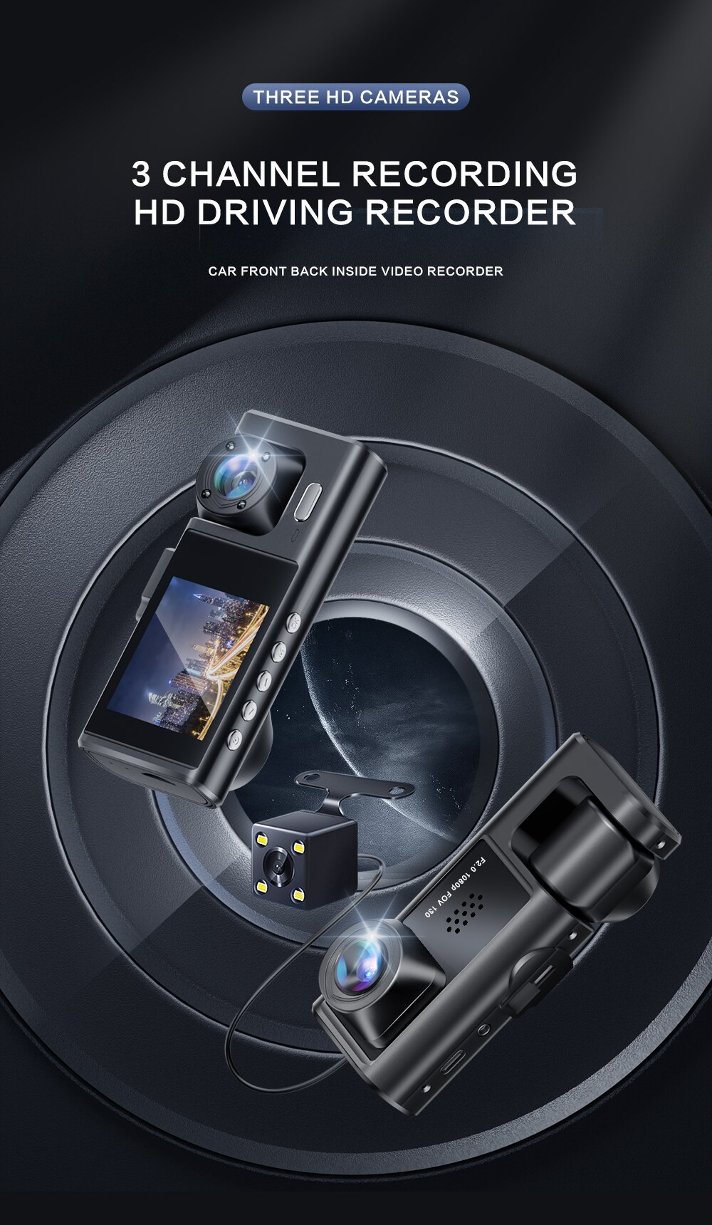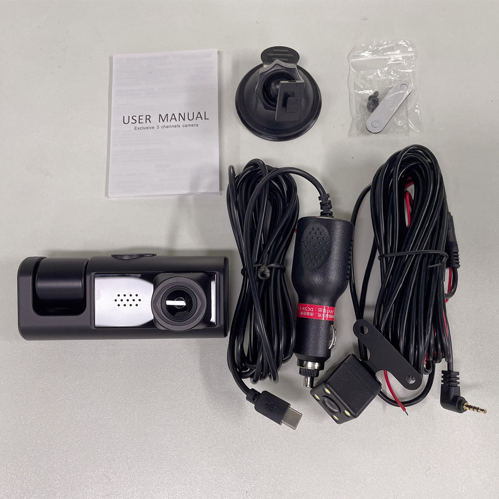跨境热卖三录行车记录仪倒车影像夜视补光1080P三镜头车载记录仪