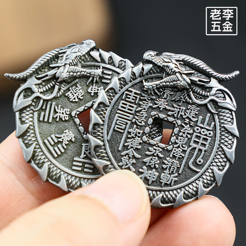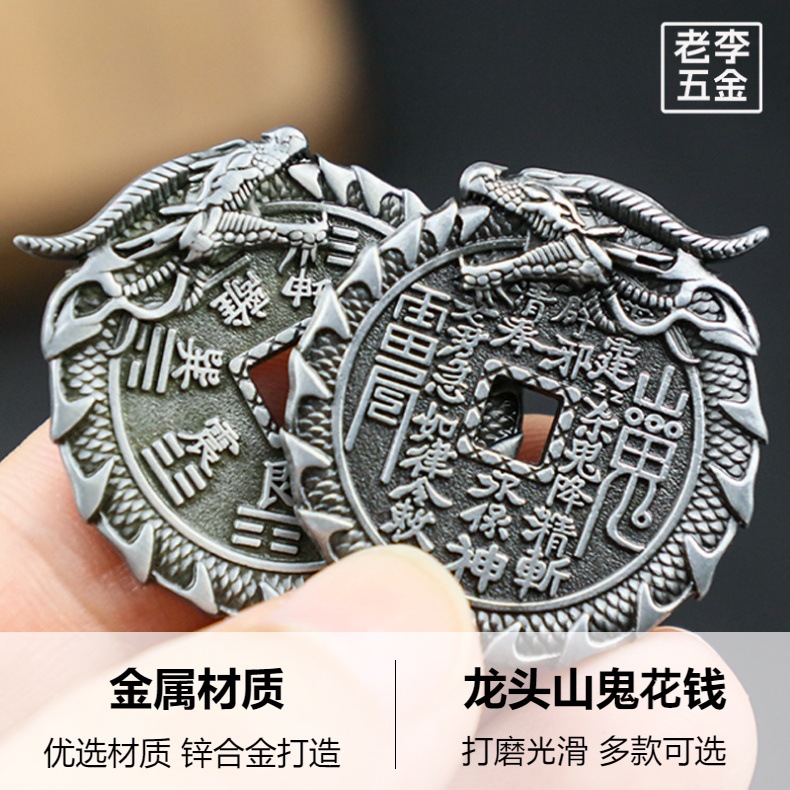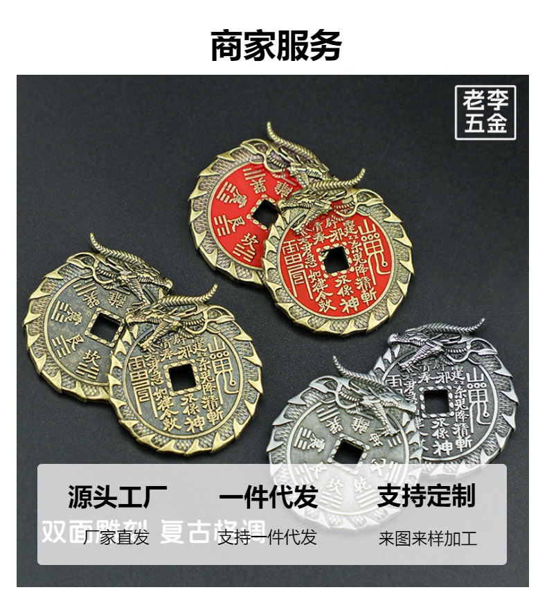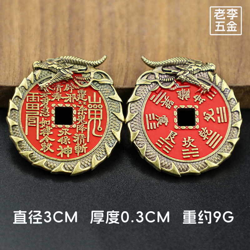 龙头山鬼花钱朱砂铜钱创意龙纹雕刻八卦铜币仿古花钱钱币厂家批发 投诉