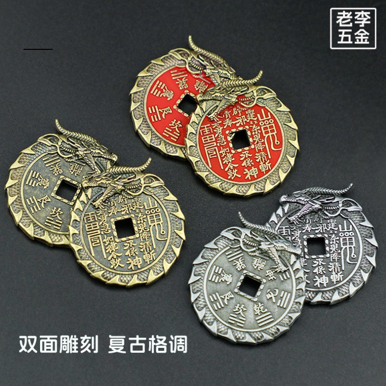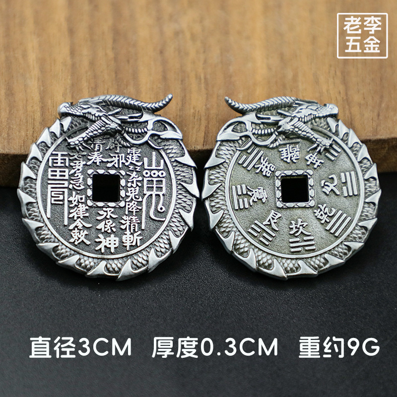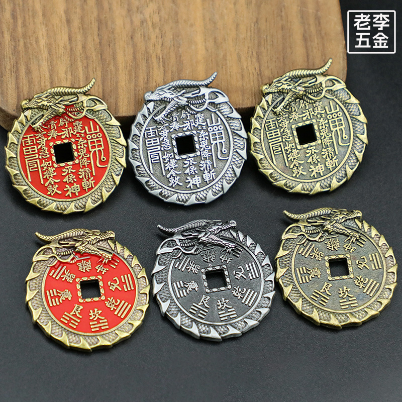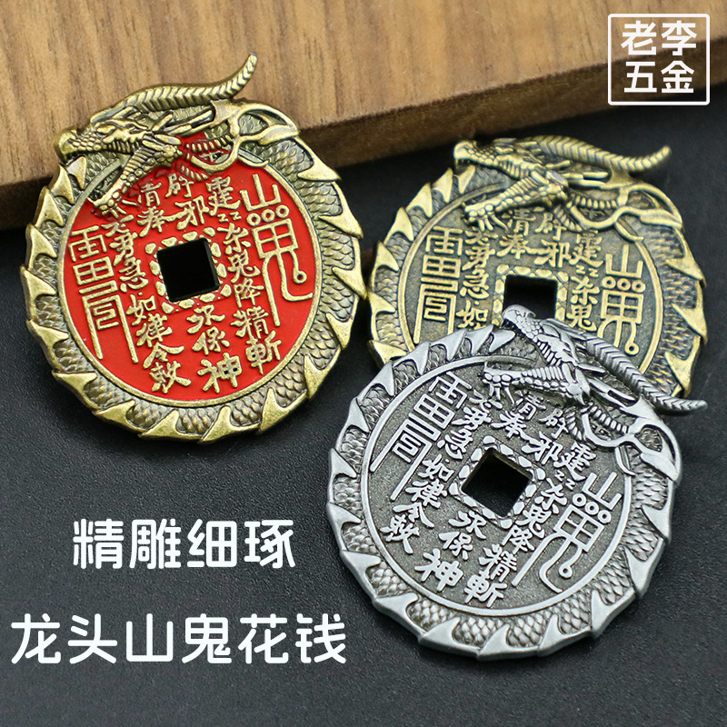 龙头山鬼花钱朱砂铜钱创意龙纹雕刻八卦铜币仿古花钱钱币厂家批发