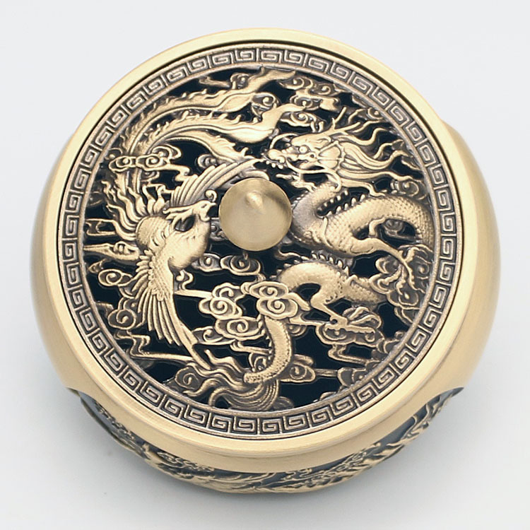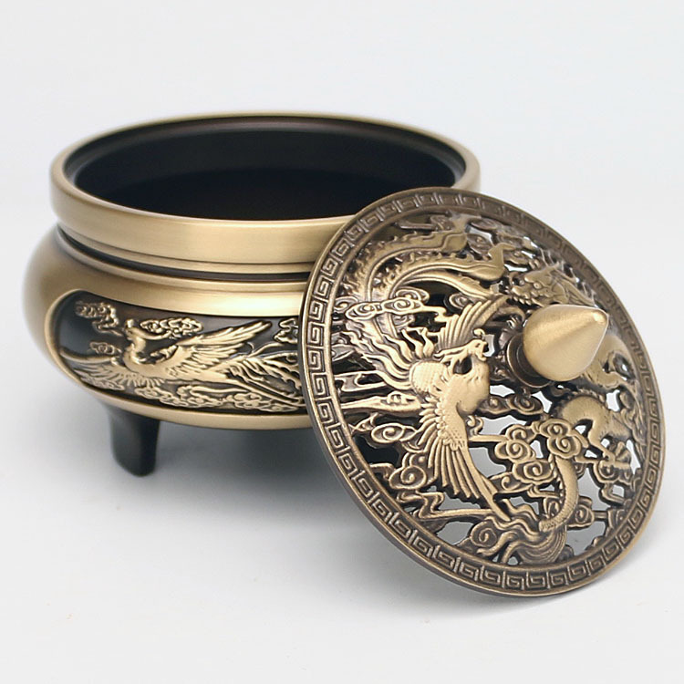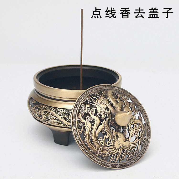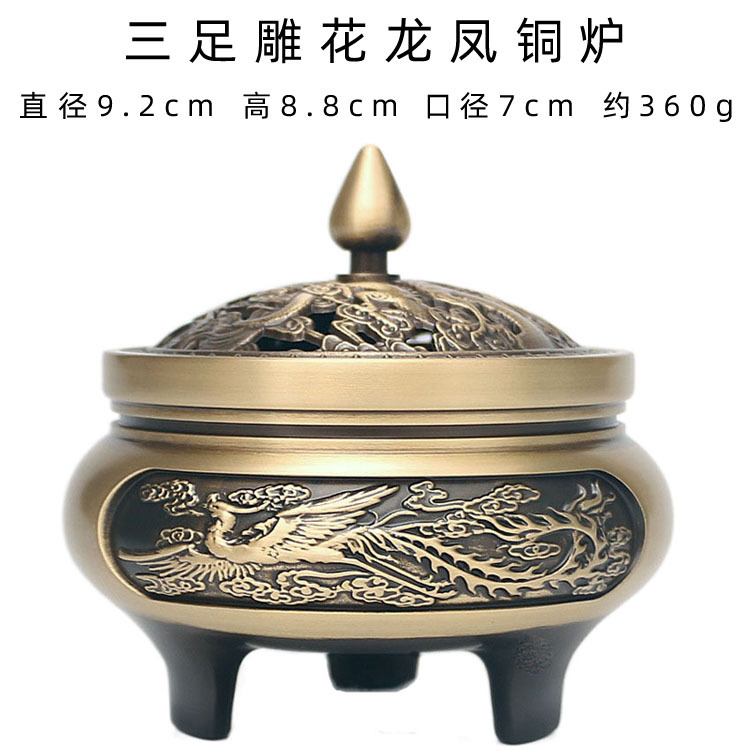 香薰炉三足雕花龙凤铜香炉全铜檀香炉家用室内吉祥盘香熏香炉摆件