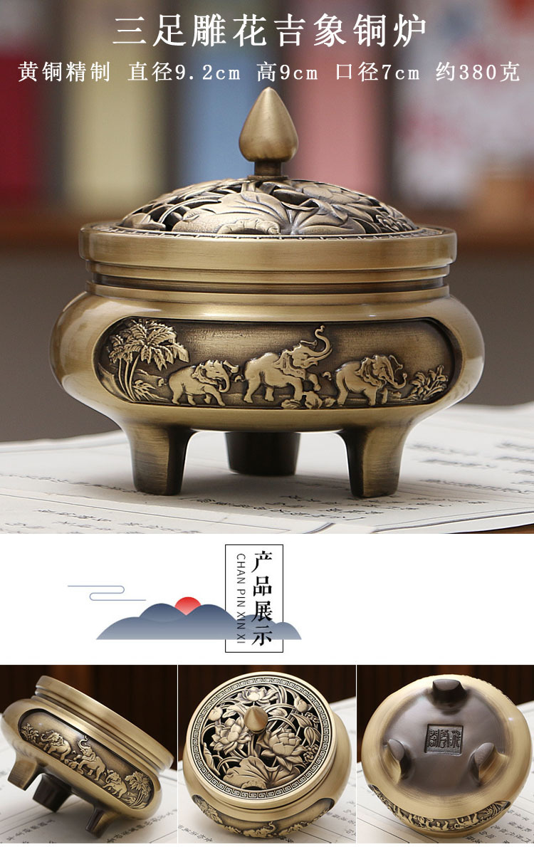 香薰炉三足雕花龙凤铜香炉全铜檀香炉家用室内吉祥盘香熏香炉摆件 投诉