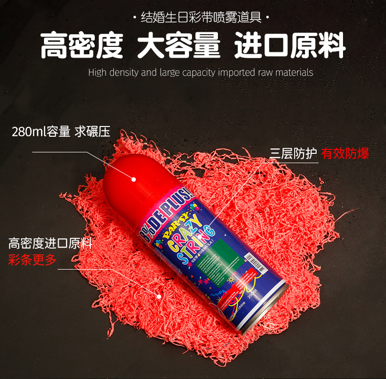 出口彩带婚礼彩喷开业喷雾雪花结婚用品喷彩带泡沫彩带丝礼炮彩喷 投诉