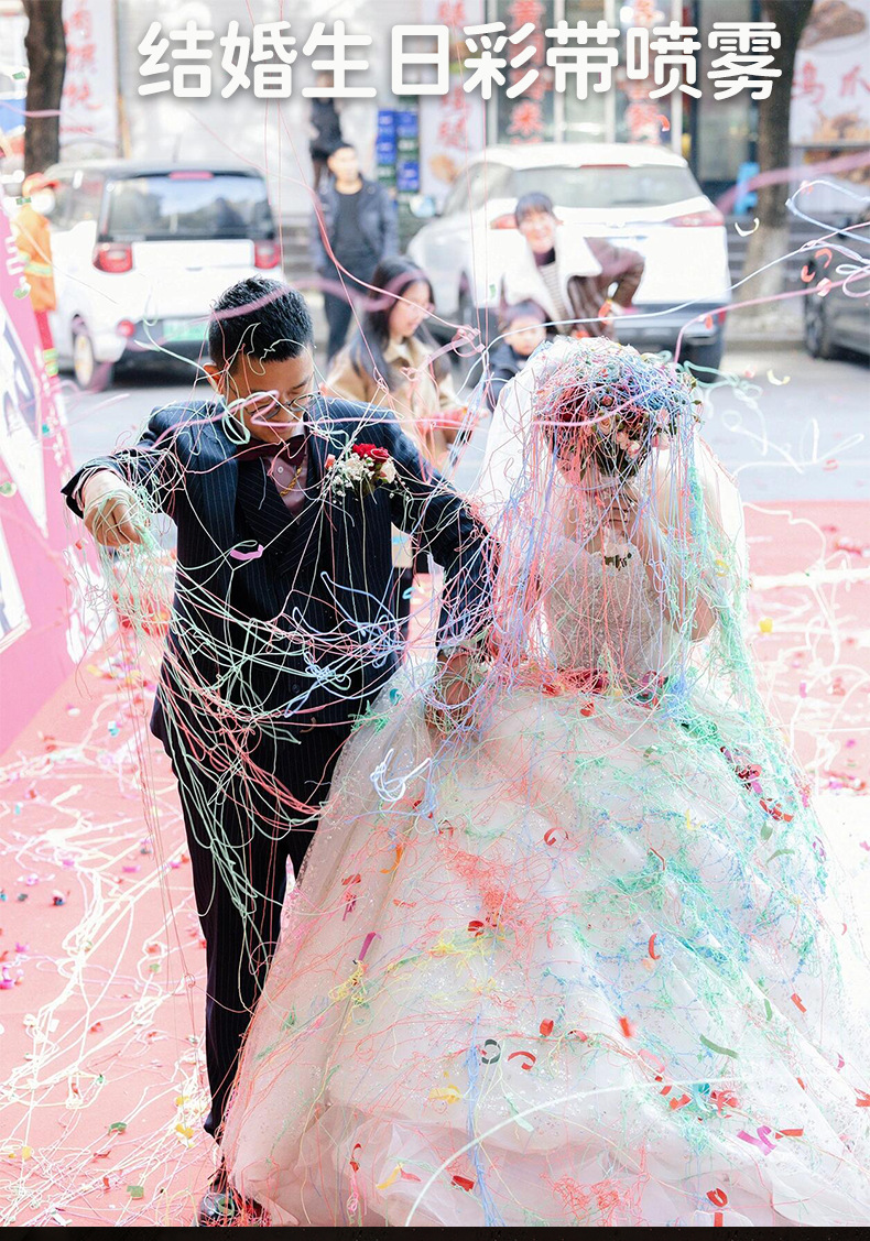 出口彩带婚礼彩喷开业喷雾雪花结婚用品喷彩带泡沫彩带丝礼炮彩喷