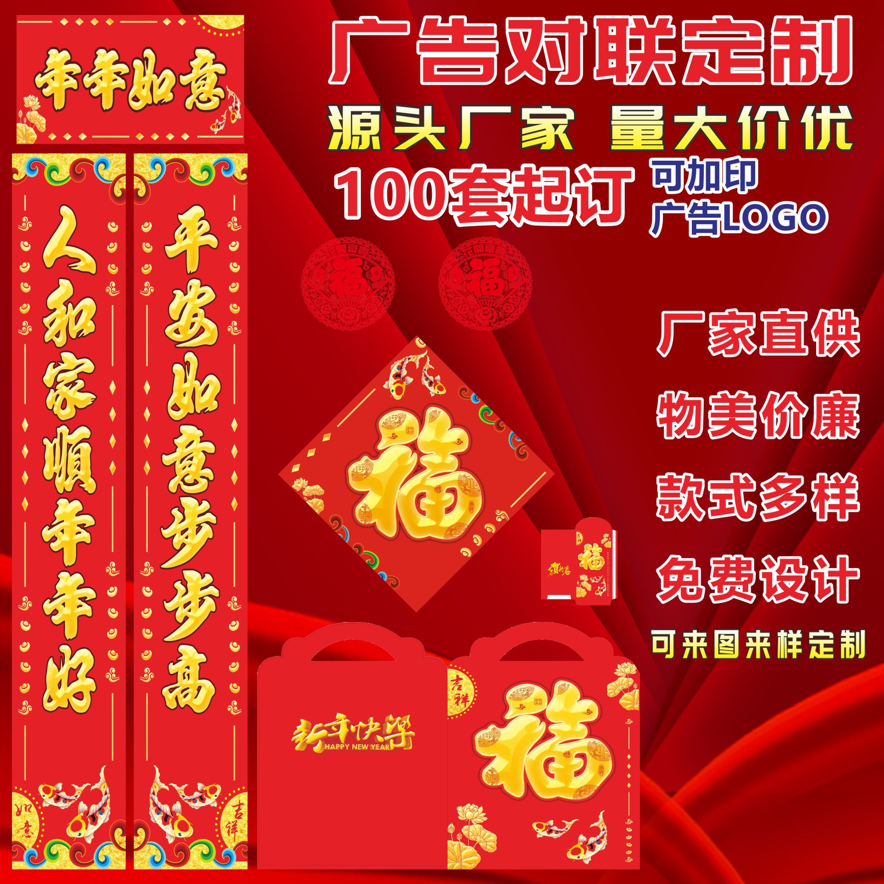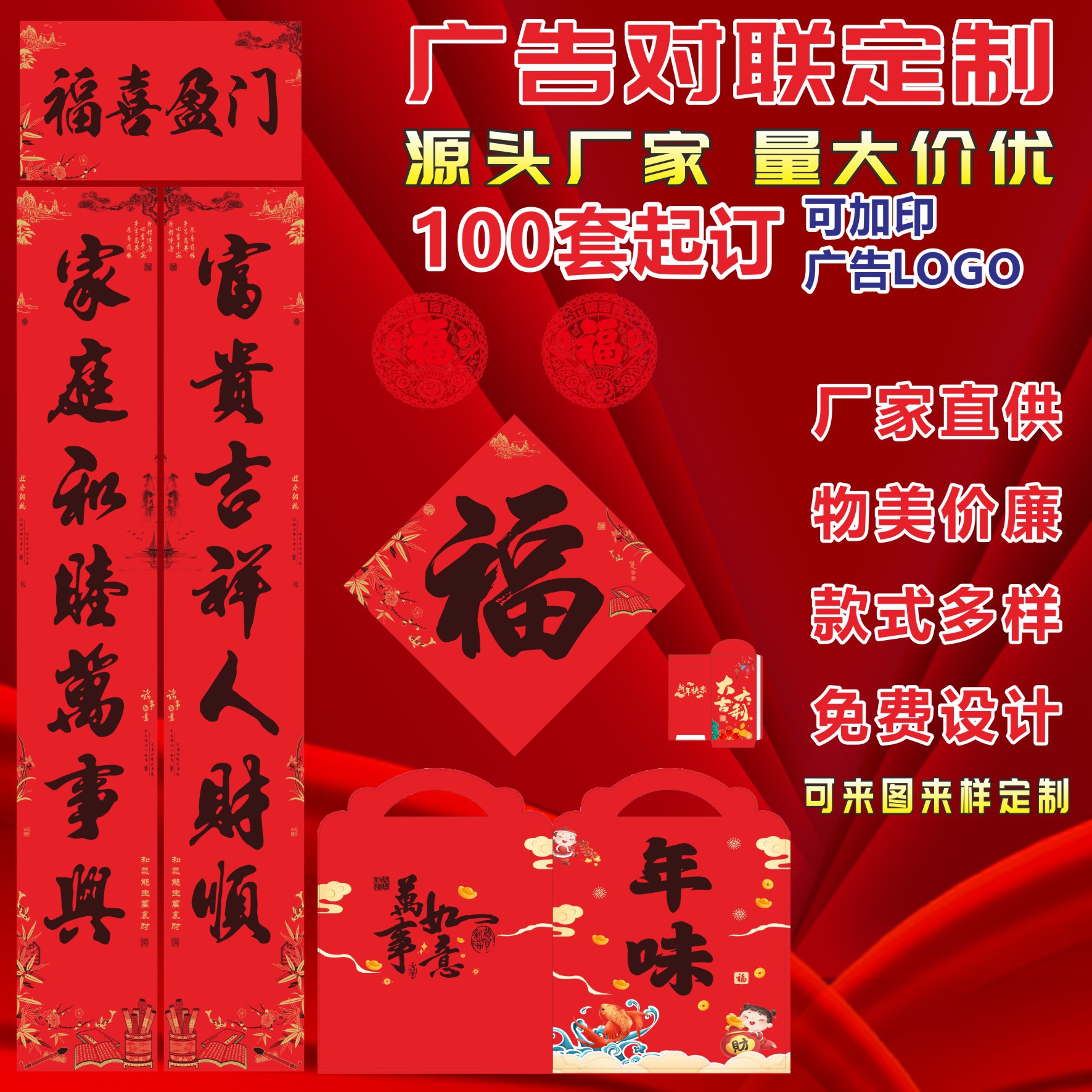 2025蛇年植绒春联大礼包红包春节福订做批发烫金银行广告对联定制 投诉