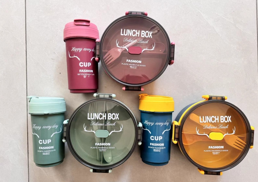单层带杯餐盒:杯子尺寸:14*7.5CM , 装箱数:48个,箱规:67*49*47CM,整箱毛净重:12/10.5kg