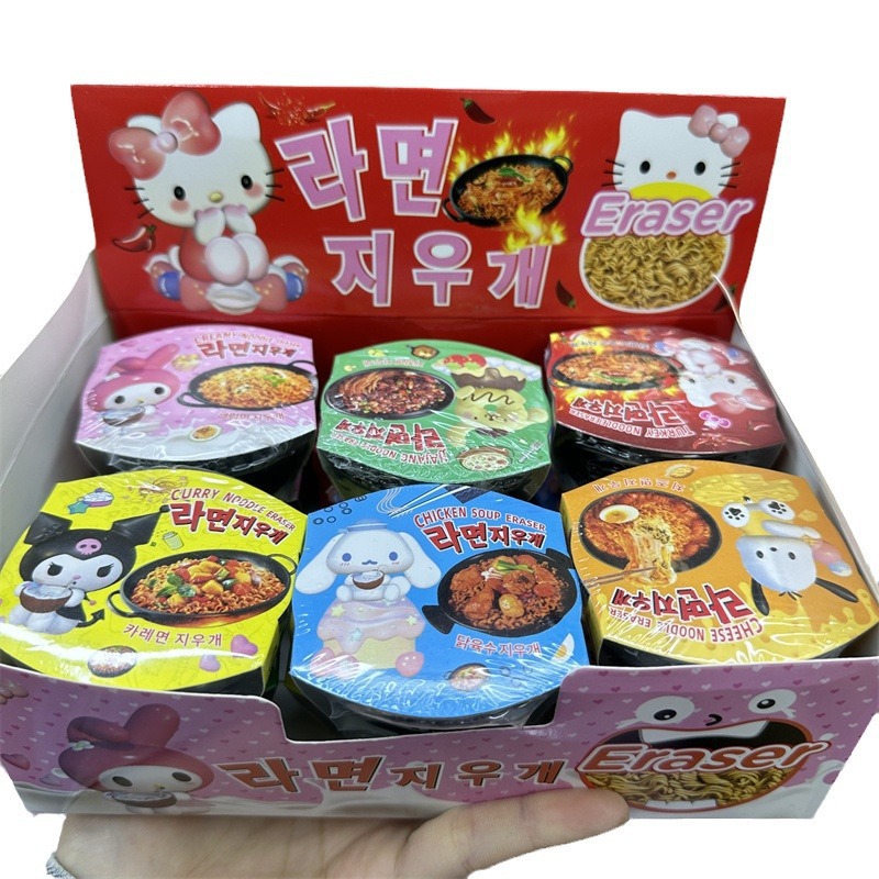 外贸跨境三丽鸥大耳狗盲盒橡皮擦库洛米美乐蒂泡面方便面橡皮礼品