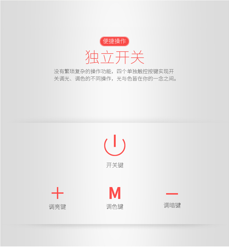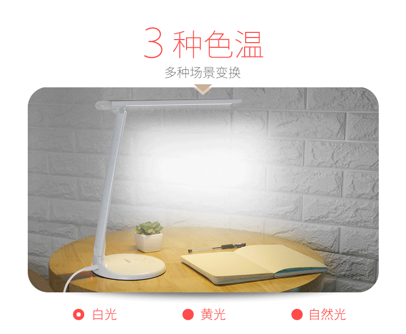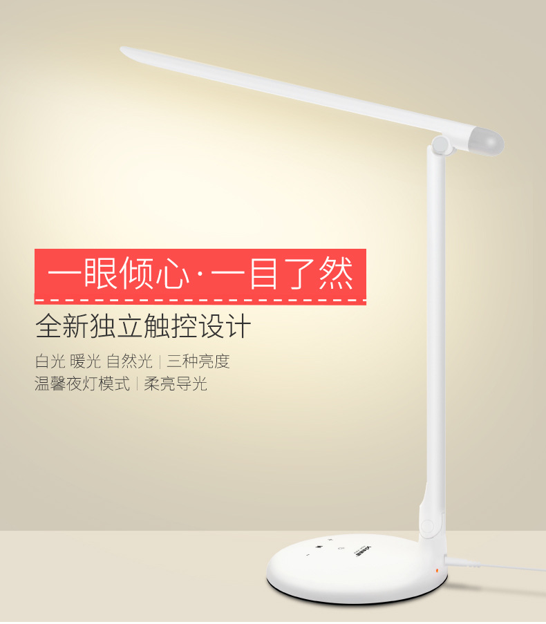 冷暖双色调光台灯,采用48+4PCS LED护眼灯珠,触控开关暖白光、小夜灯模式,每档均可调节光强弱,180°可调节灯臂,是家居、学习好伙伴