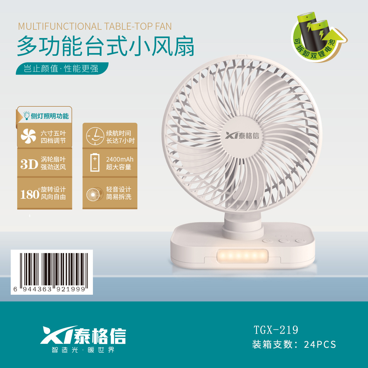 多功能充电风扇【6寸*5扇叶】