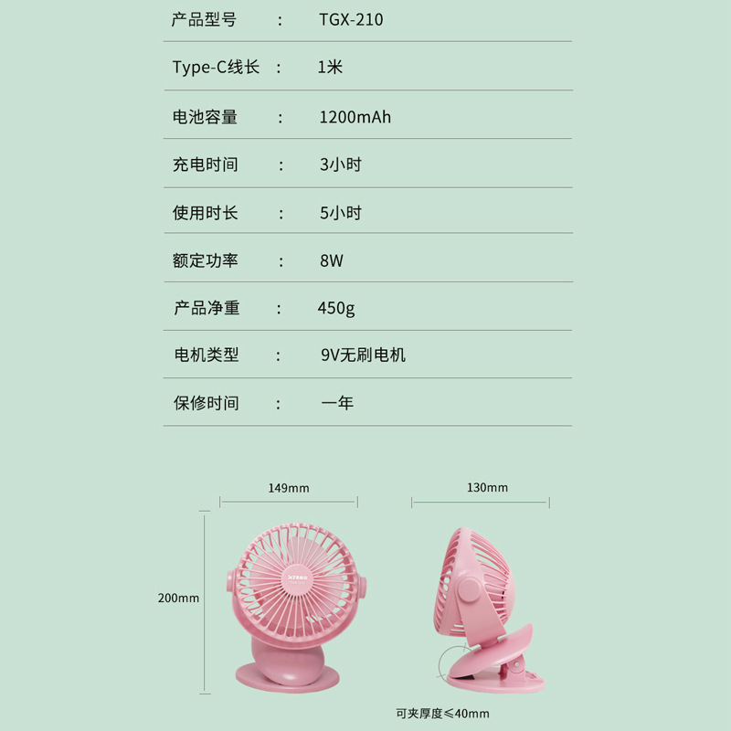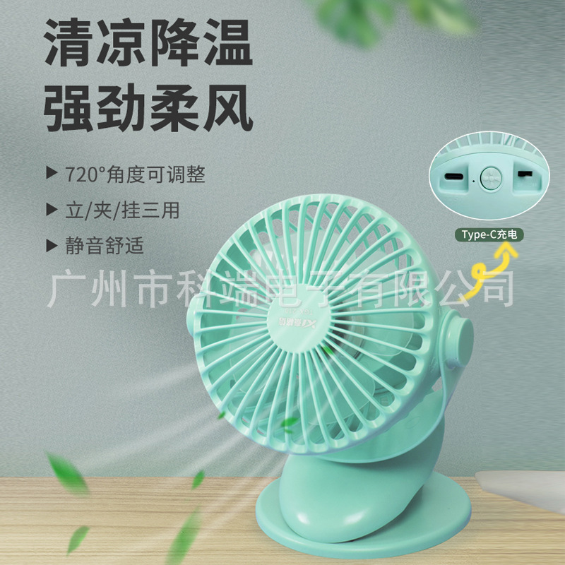 三档调节风速 Type-C充电口 可360°摇头