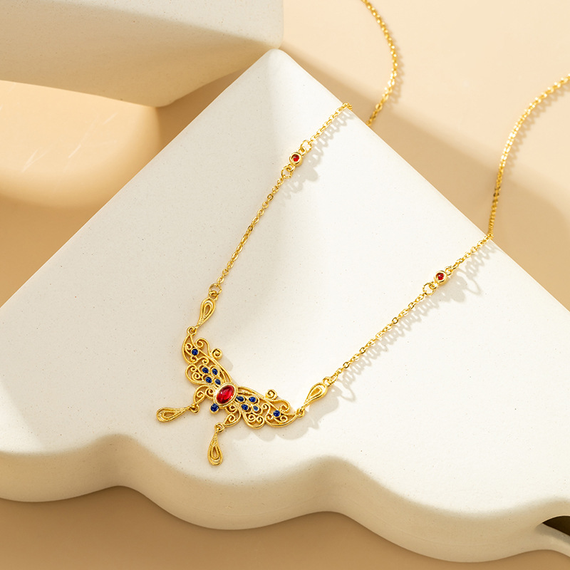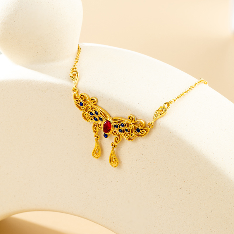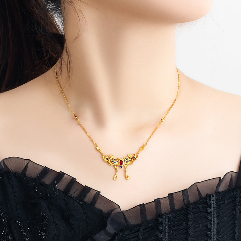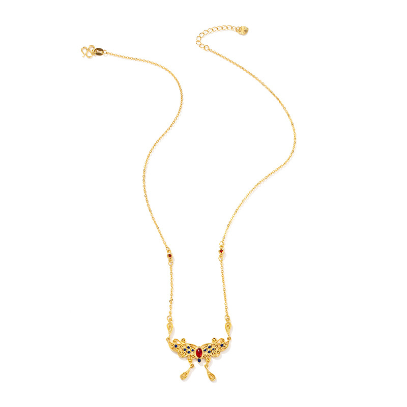 古法沙金庄生梦蝶锁骨链珐琅彩宫廷风首饰套链久不掉色花丝项链女 English | 投诉