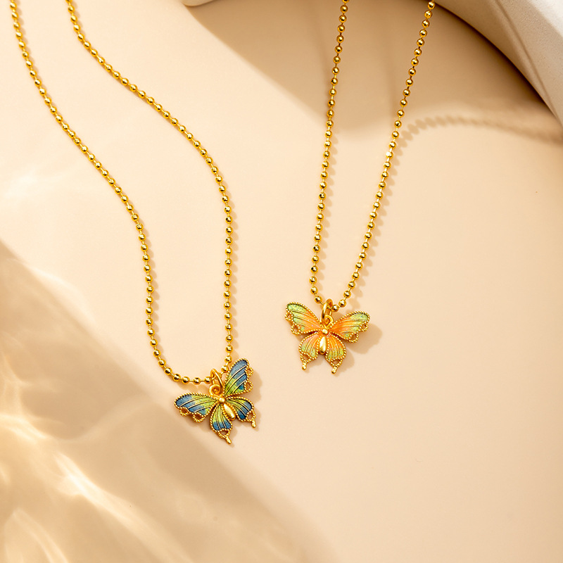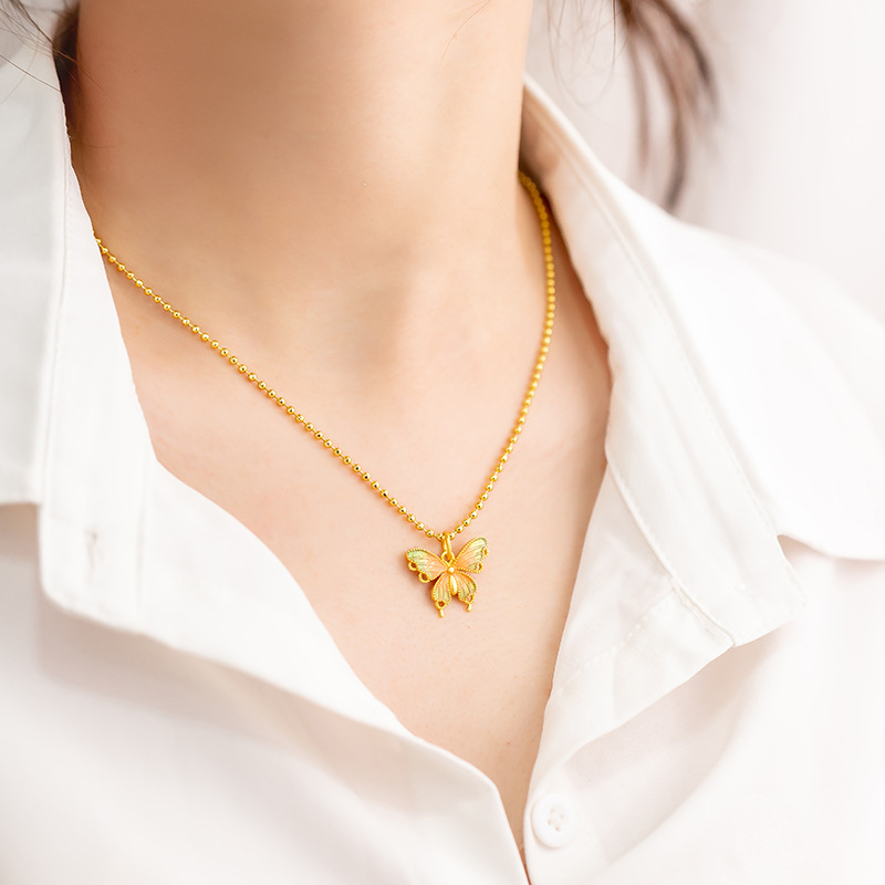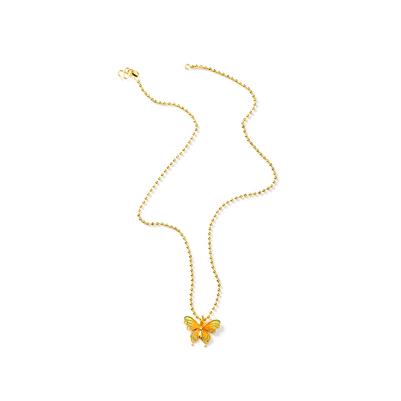 新中式蝴蝶仙踪古法吊坠越南沙金珐琅彩首饰久不掉色锁骨项链女 English | 投诉