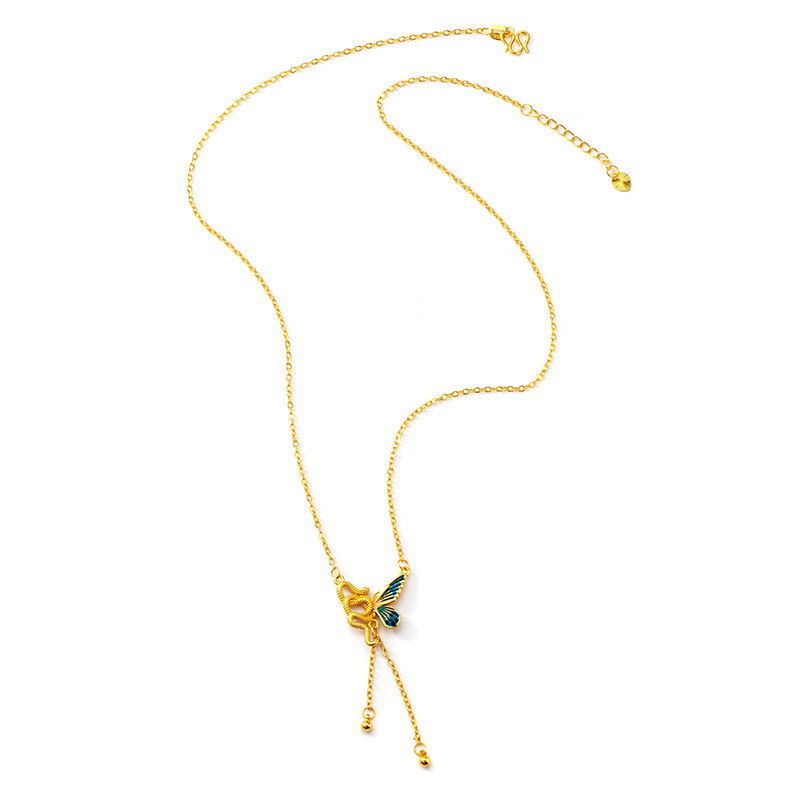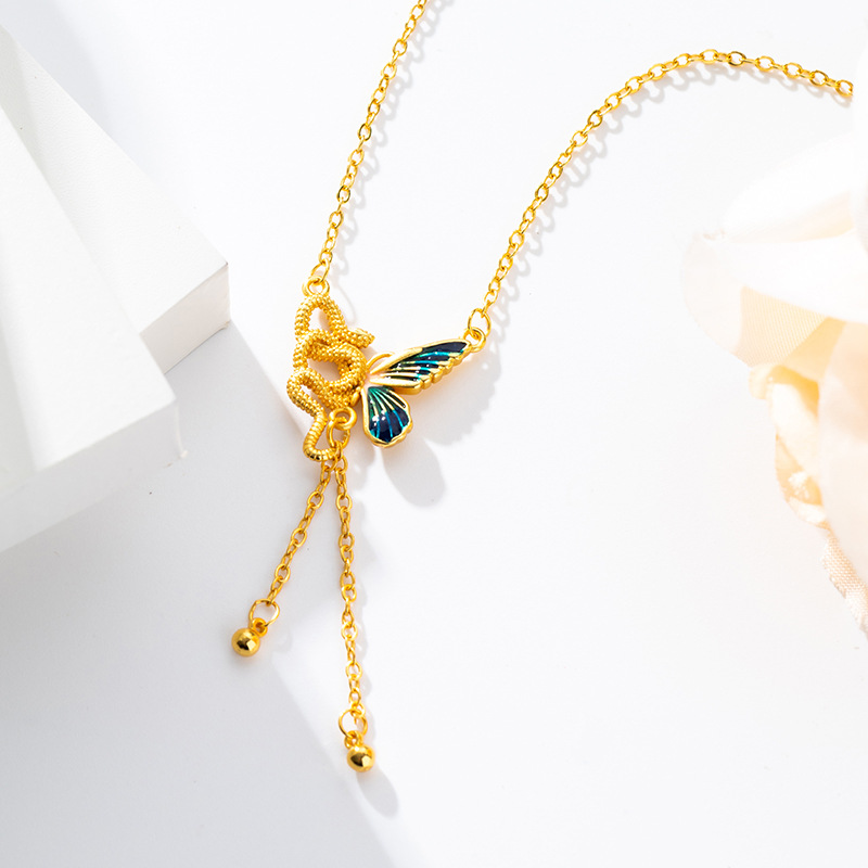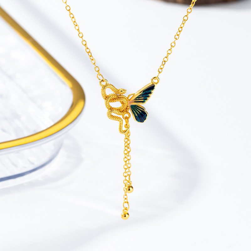 新中式蛇与蝶越南沙金首饰仿古法黄金锁骨套链珐琅彩项链久不掉色 English | 投诉