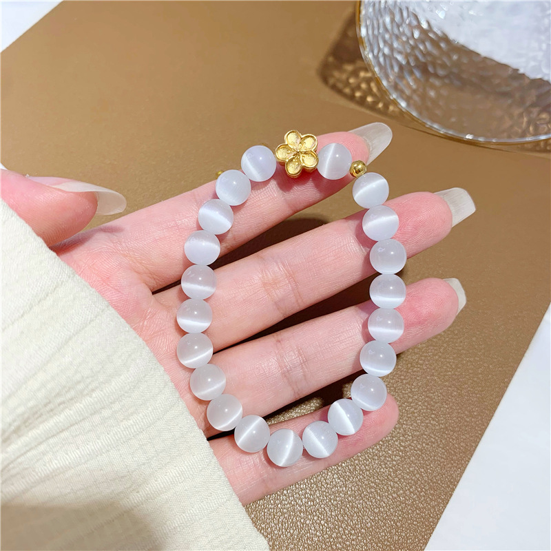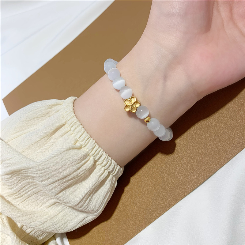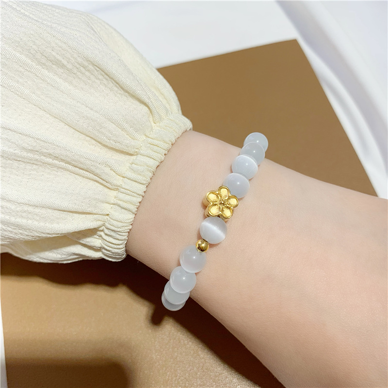 百搭白猫眼月光石串珠手串首饰品 越南沙金桃花弹力手链女不掉色 English | 投诉