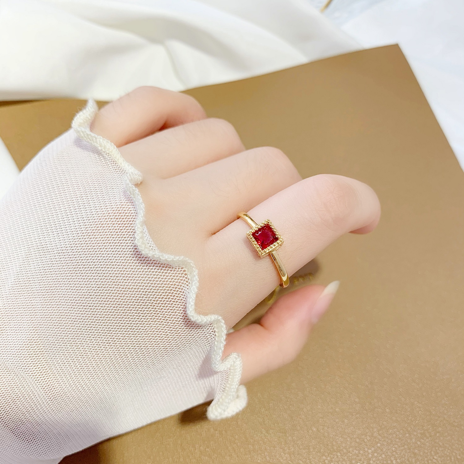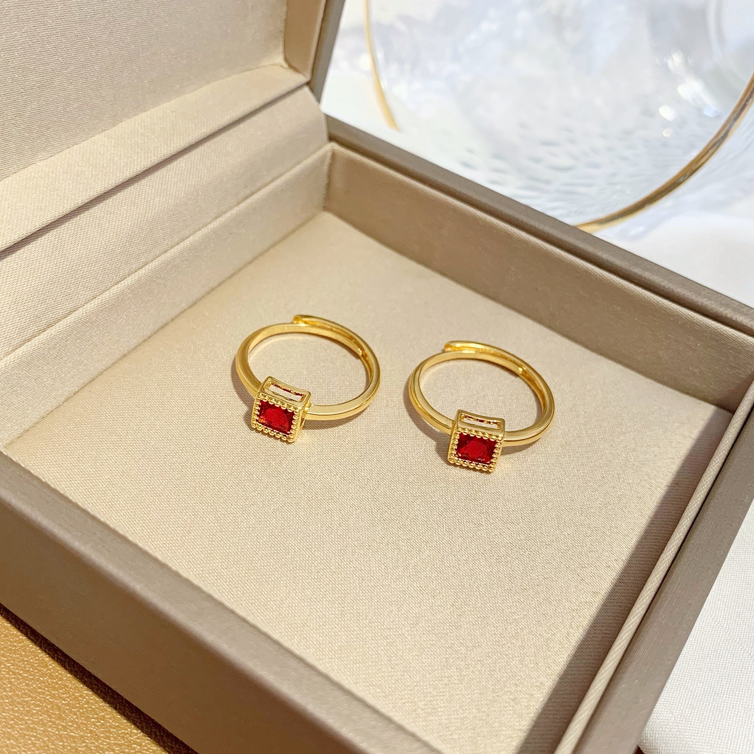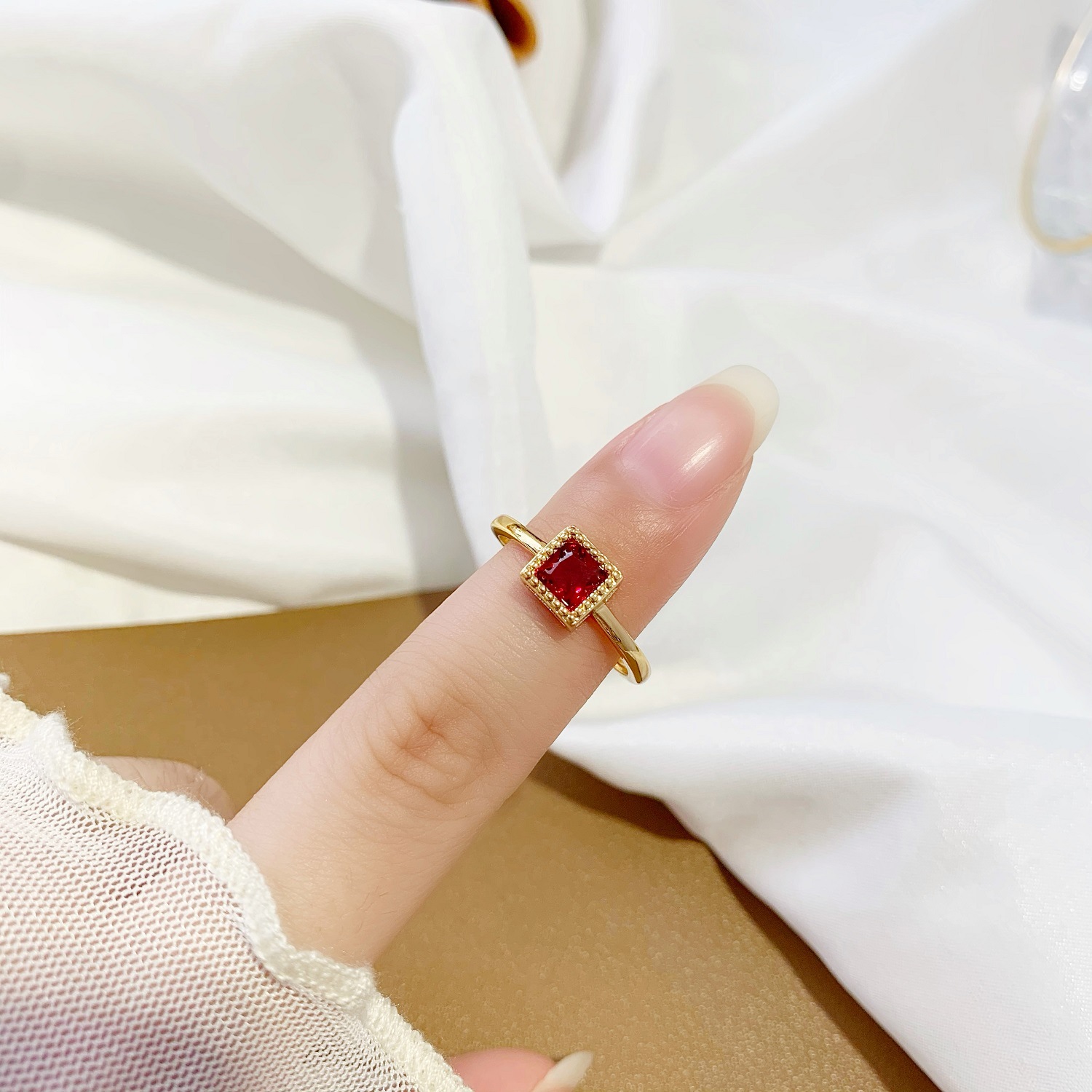 气质小方块红水晶食指戒指环仿黄金 沙金镶钻开口戒指女久不掉色 English | 投诉