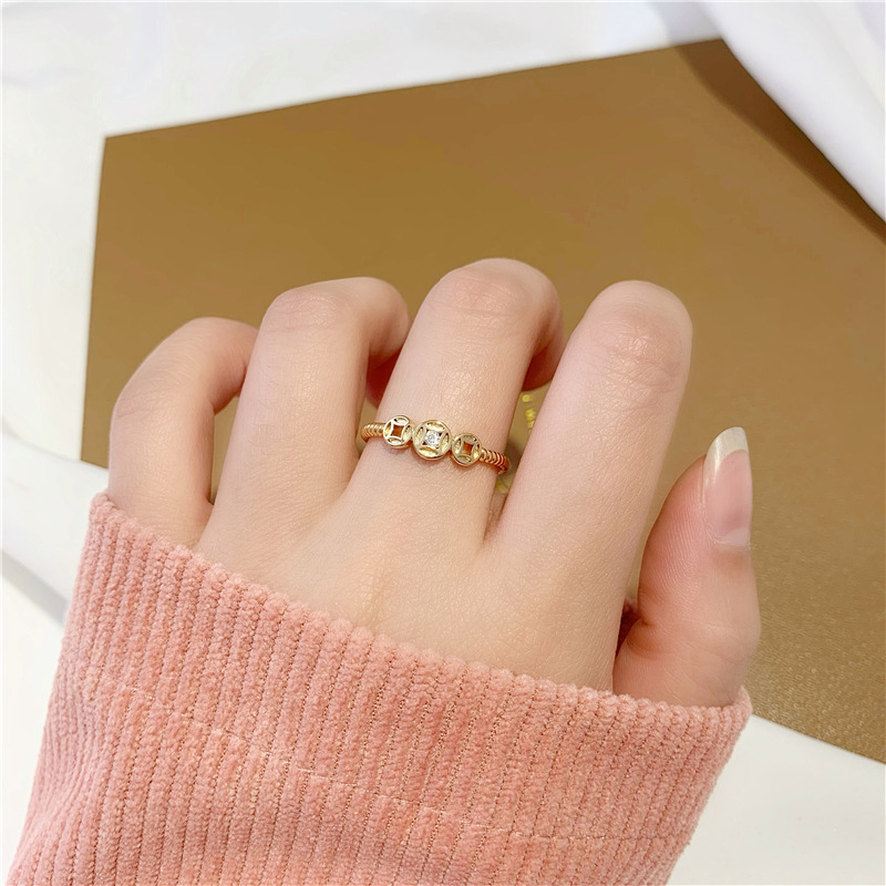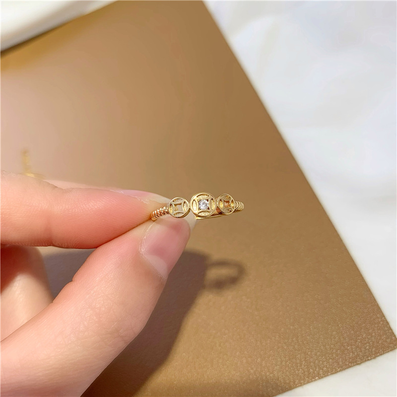 简约镶钻铜钱币食指戒指环越南沙金手饰品久不掉色开口戒指女批发 English | 投诉