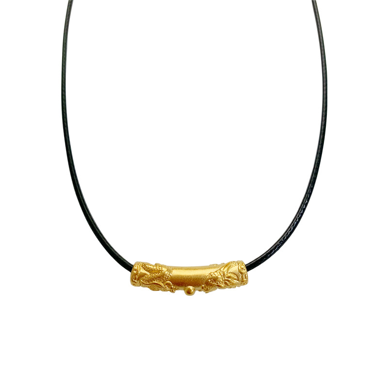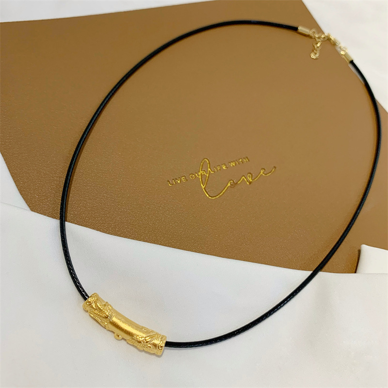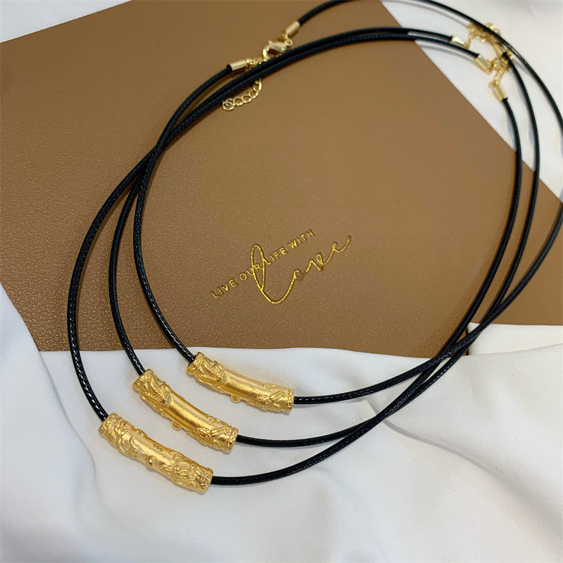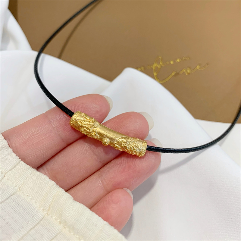 龙凤纹弯管古法传承沙金吊坠配件久不掉色皮绳锁骨项链女夏可调节