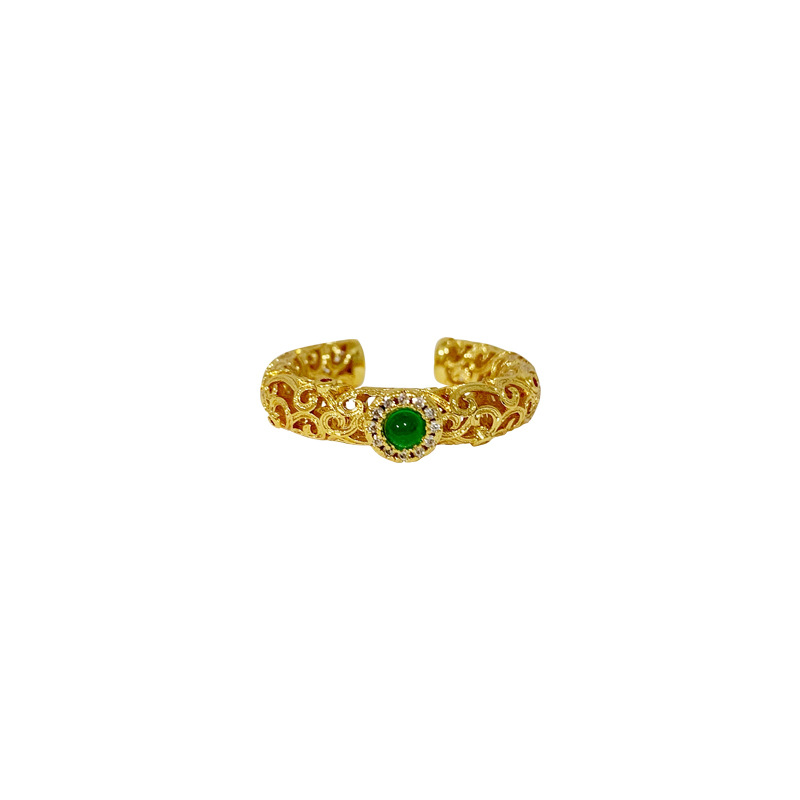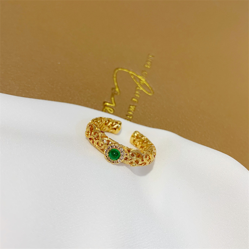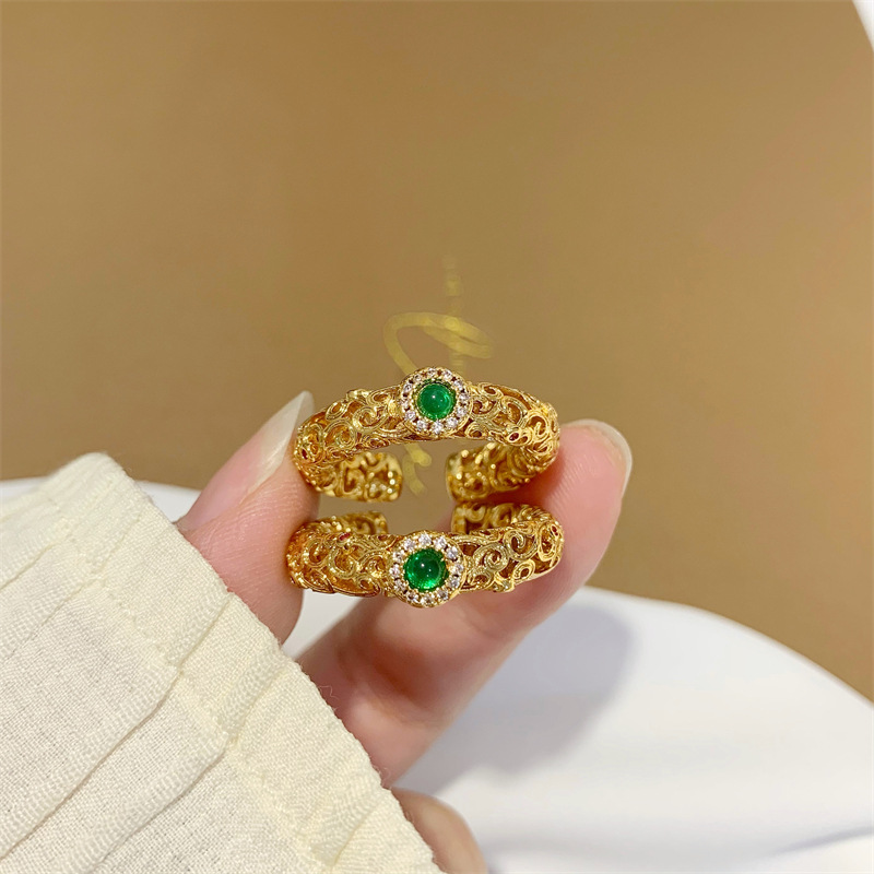 中国风祖母绿戒指女开口镂空食指戒指环复古古法沙金手饰久不掉色 English | 投诉