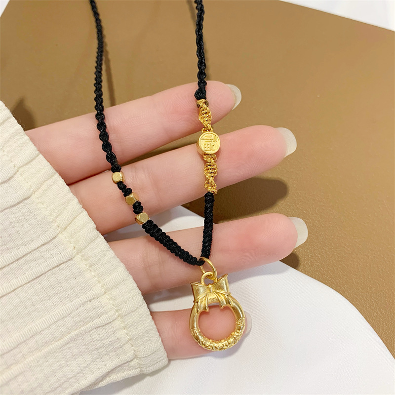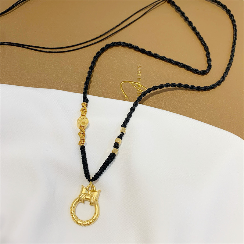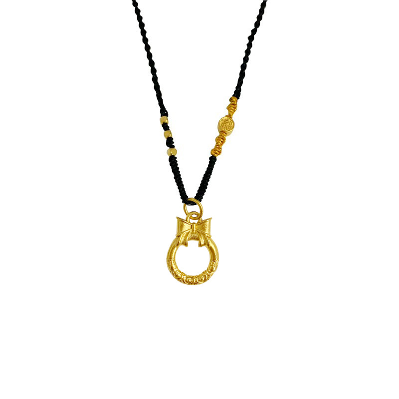 中国风蝴蝶结乾坤圈吊坠古法传承沙金首饰手工编织黑绳项链女百搭 English | 投诉