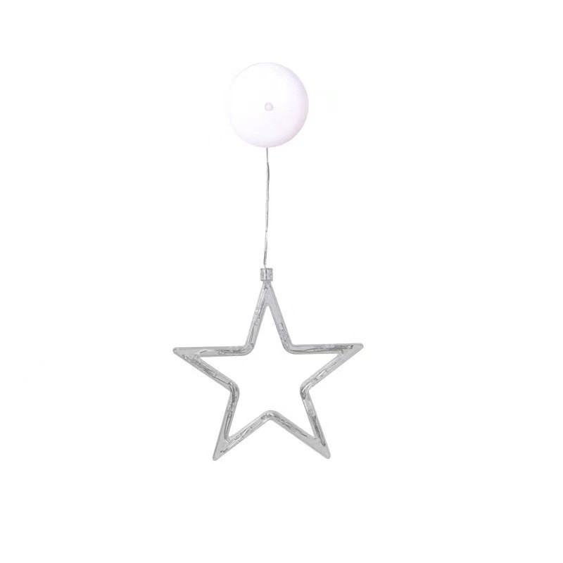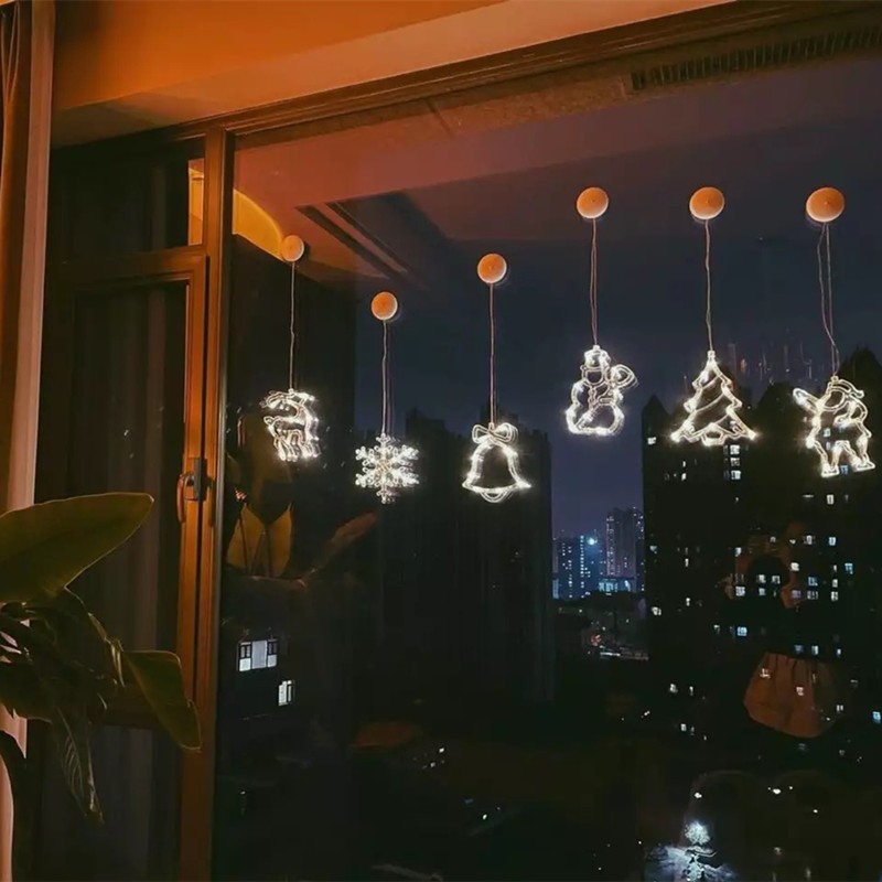 产品名称:圣诞吸盘灯 产品尺寸:引线长度30厘米(电池盒到挂件的距离) 灯珠数量:每个挂件都含10颗LED暖色灯珠 供电方式:3节7号电池(可持续亮20-30小时左右) 安装方式:电池盒背面带吸盘,可以粘在玻璃或者瓷砖上面