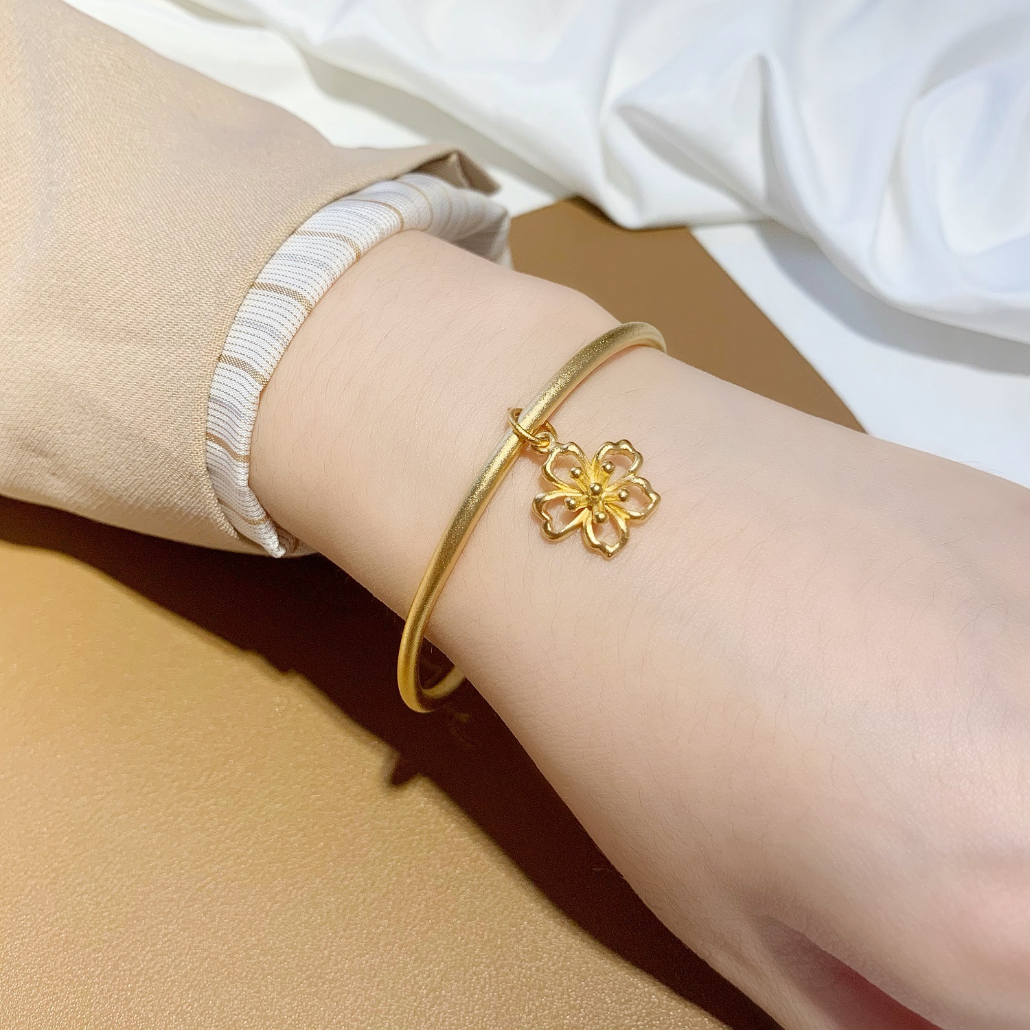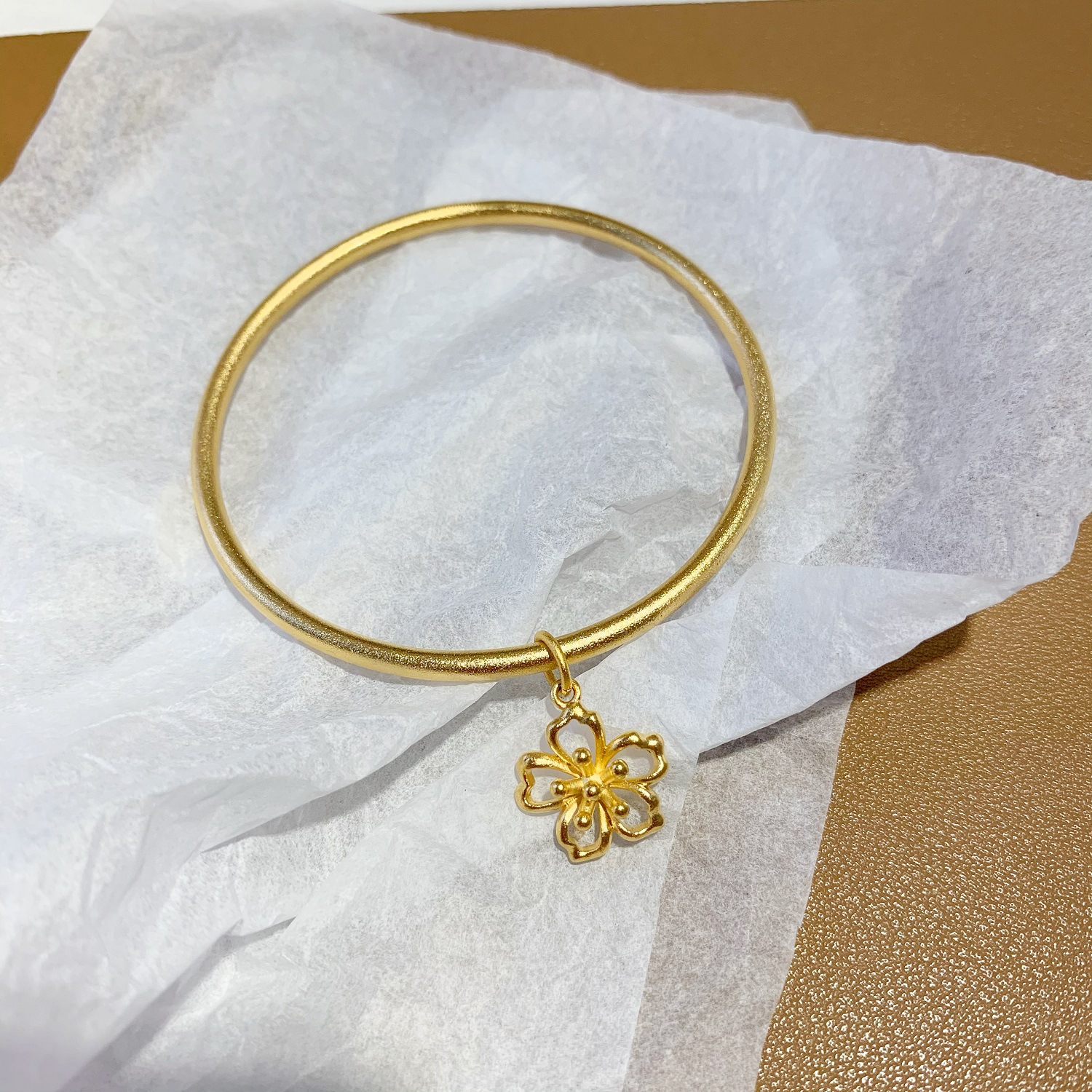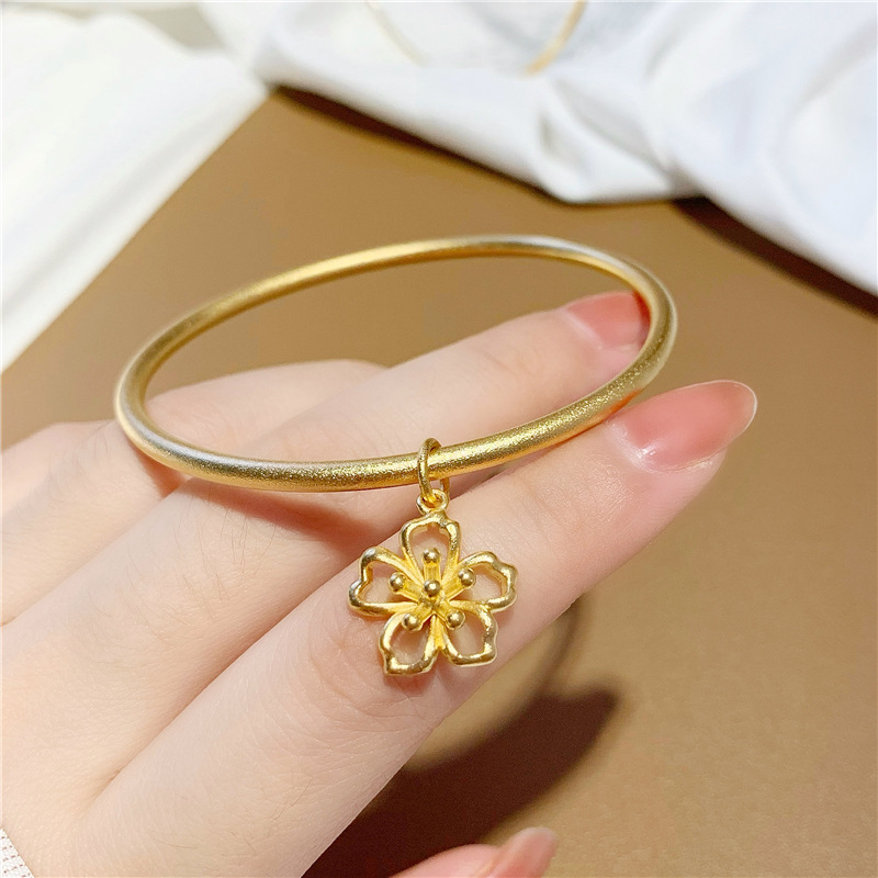 越南沙金小花朵吊坠磨砂手环手链 仿18k黄金古法传承素圈细手镯女 English | 投诉