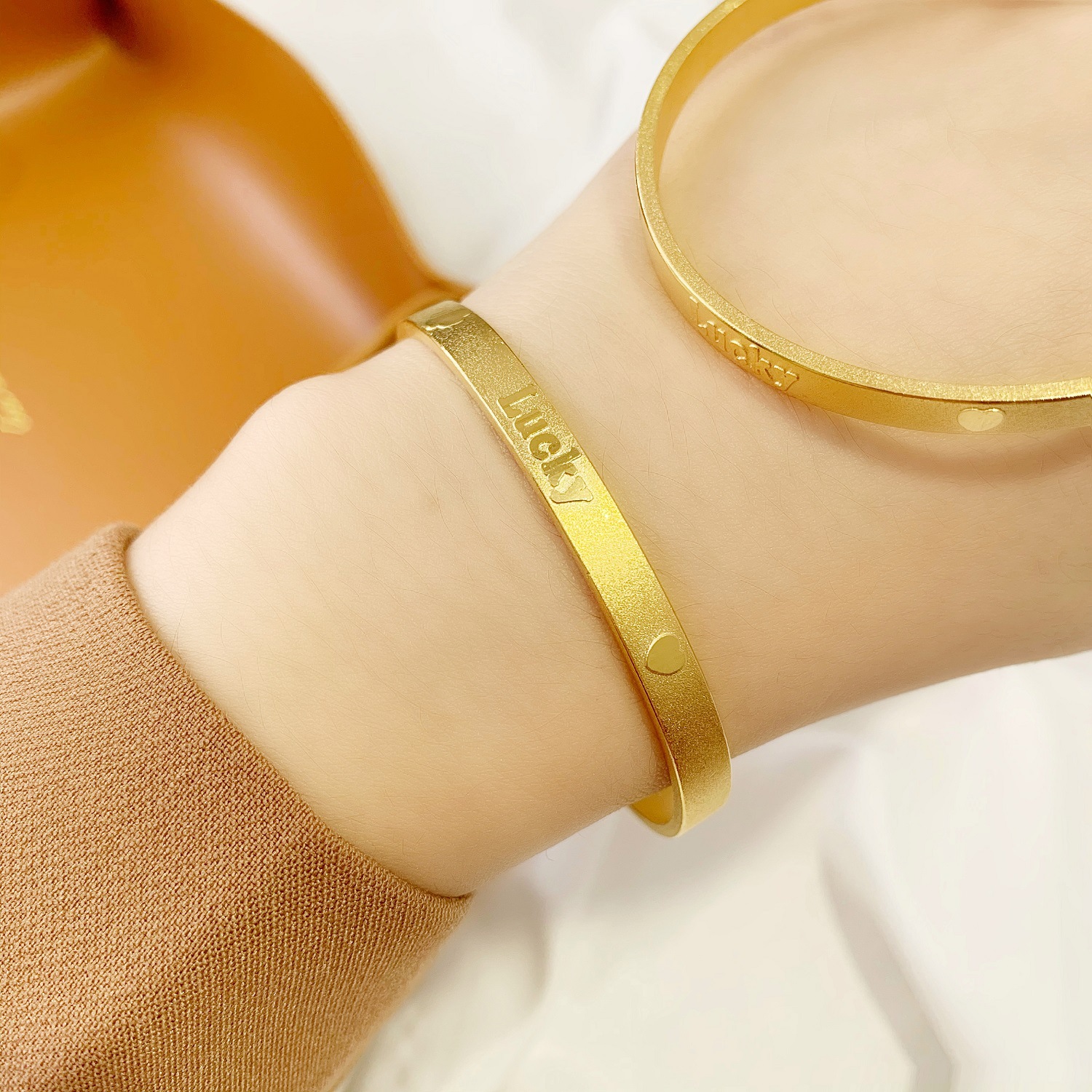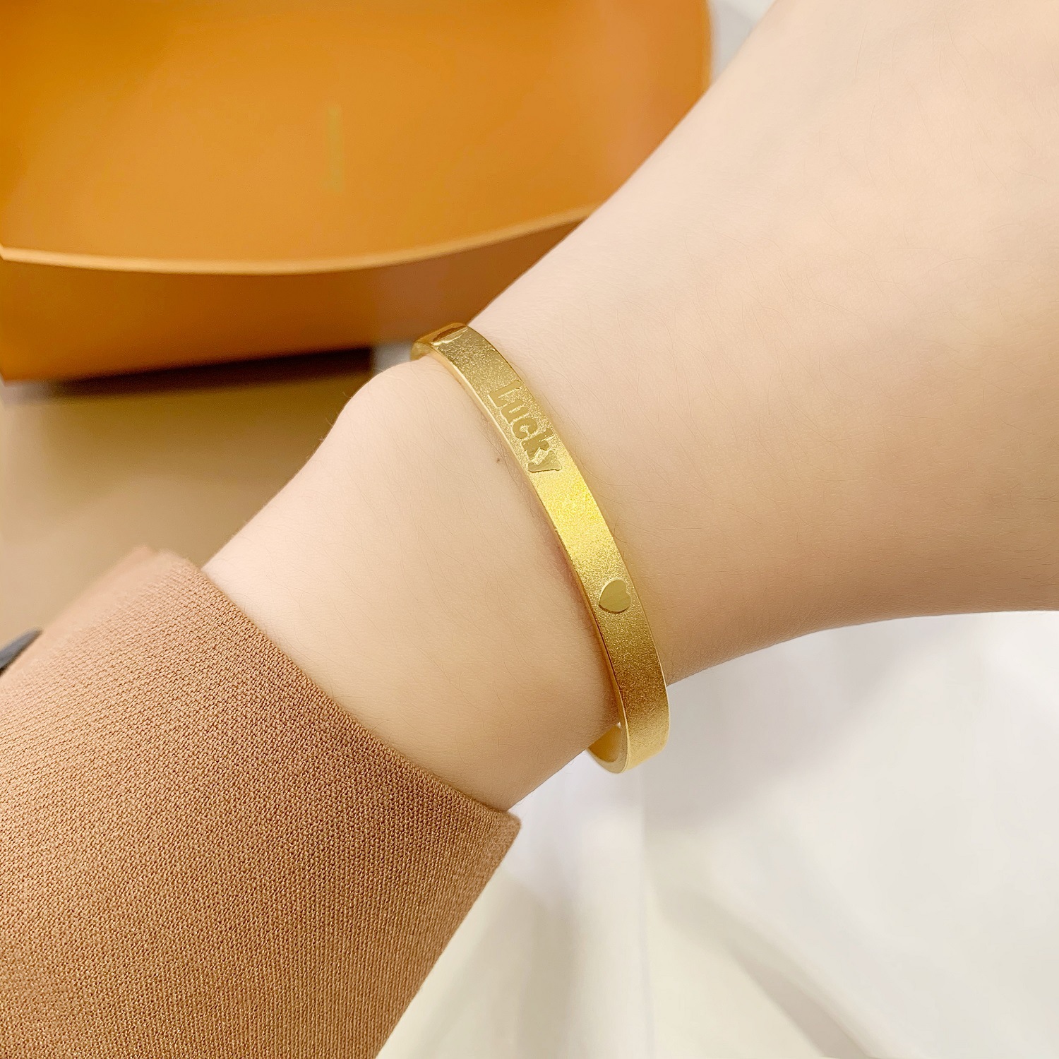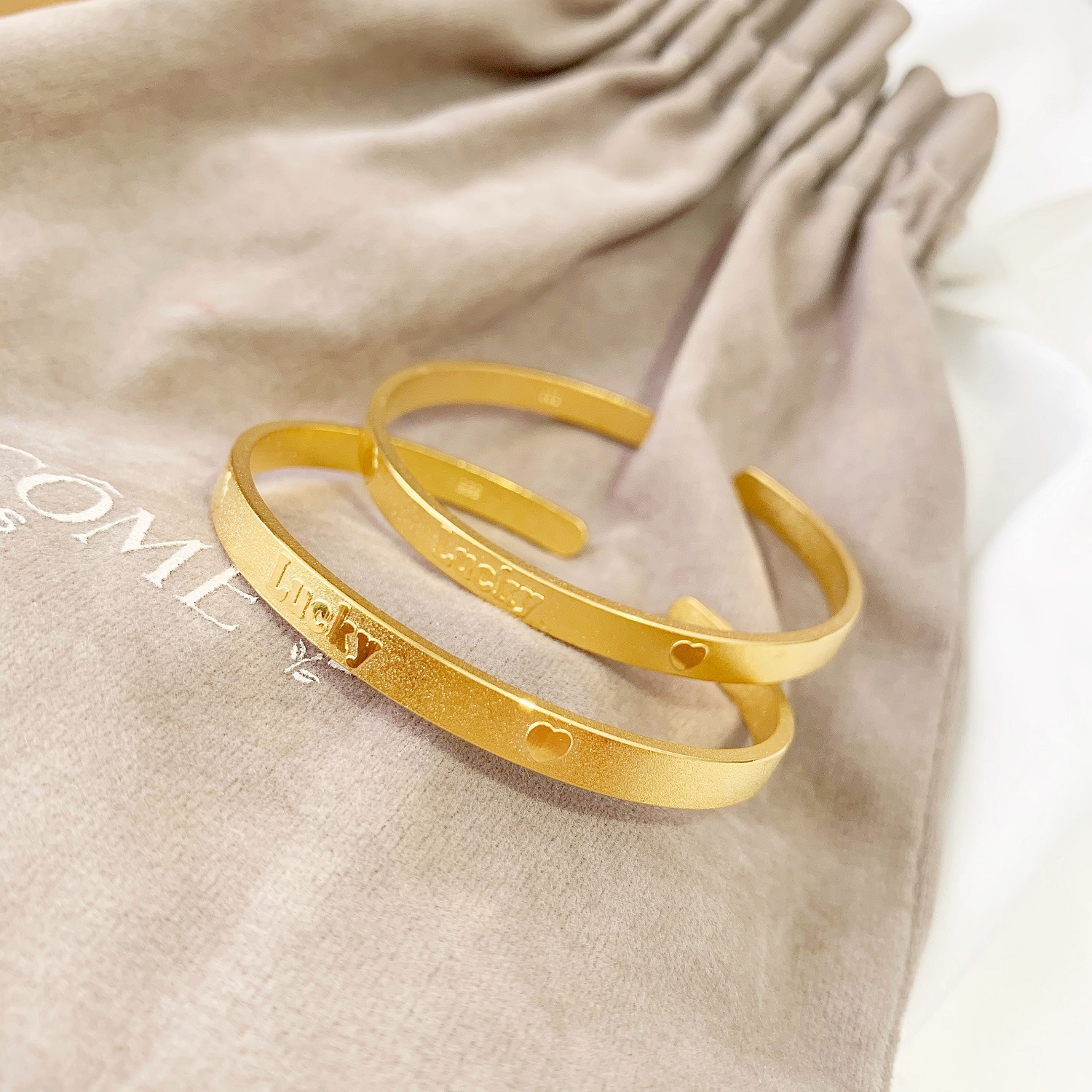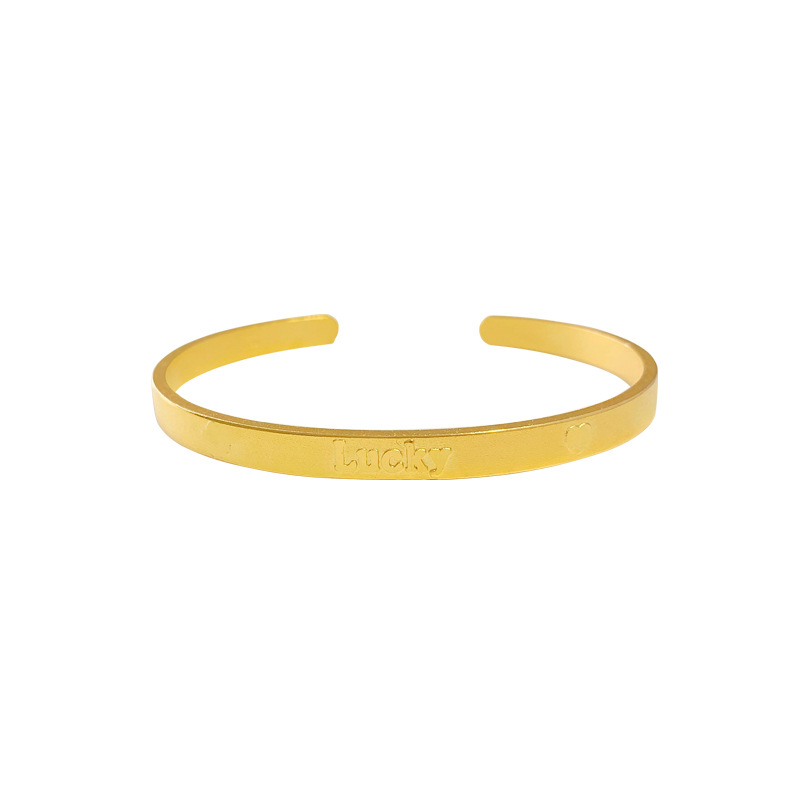 简约沙金幸运爱心手镯女久不掉色 仿24k黄金气质字母刻字磨砂手环 English | 投诉