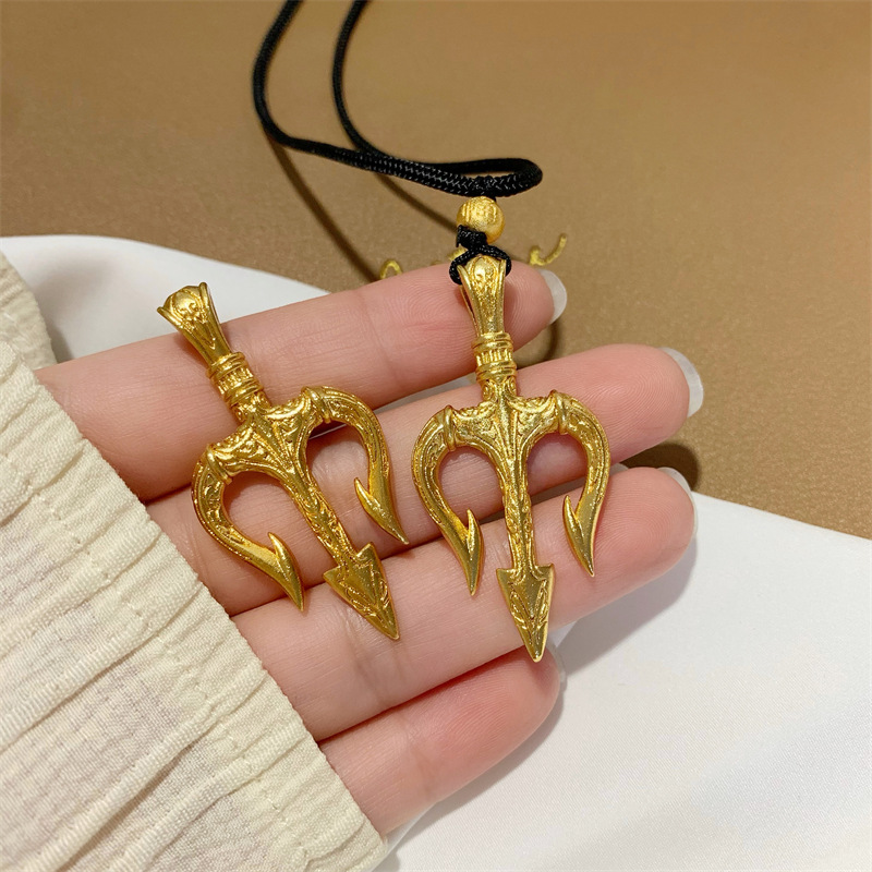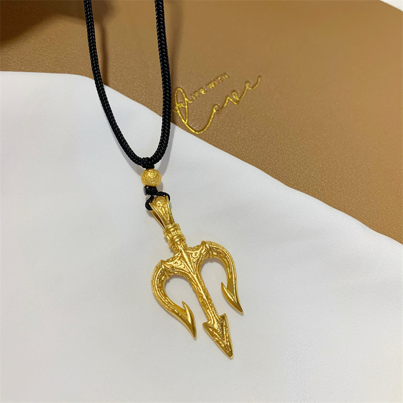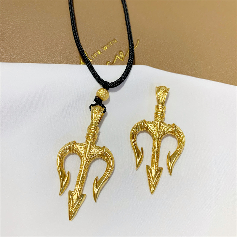金店同款海神三叉戟吊坠越南沙金首饰品久不掉色黑绳项链男女批发 English | 投诉