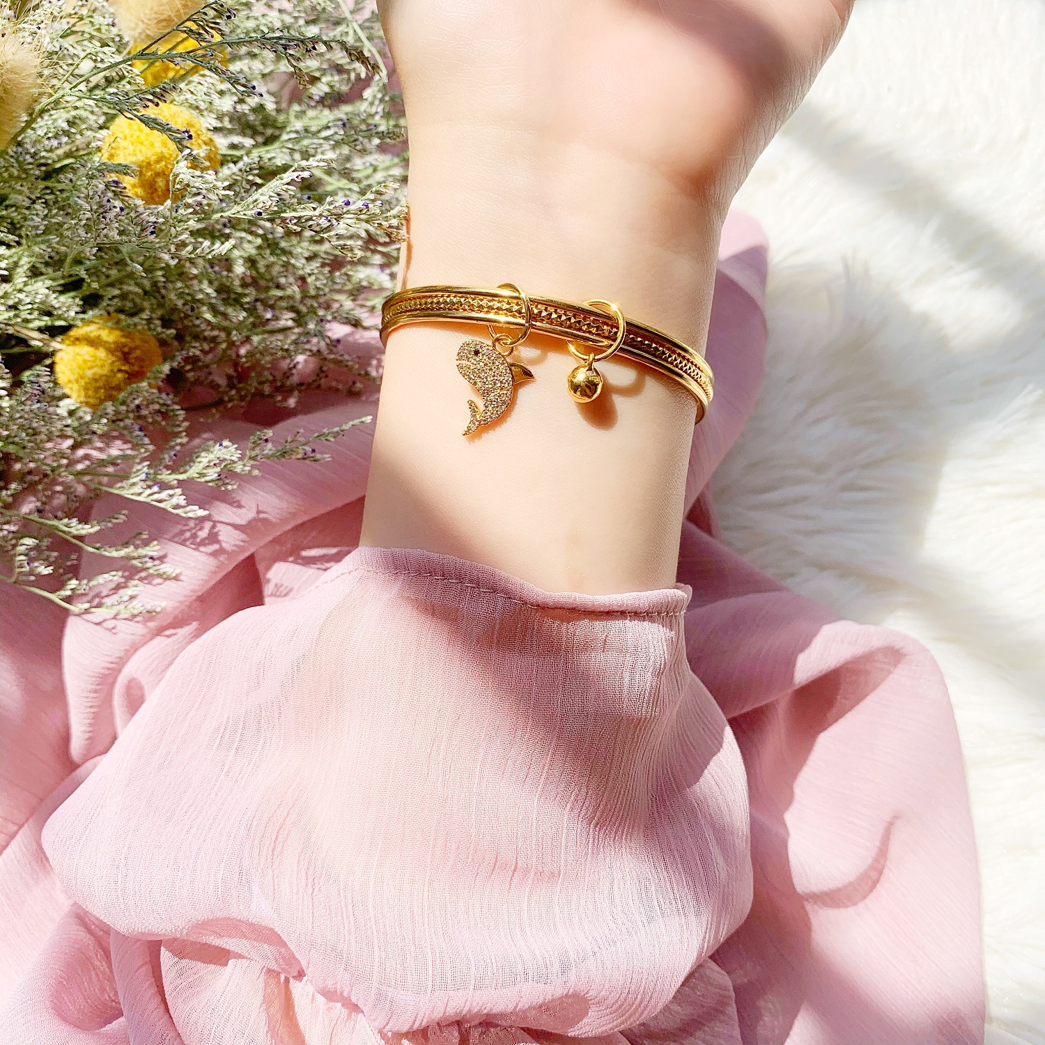 气质三根丝鲸鱼铃铛细手镯包越南沙金 镀18K金久不掉色金色手环女 English | 投诉