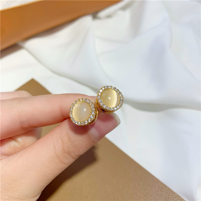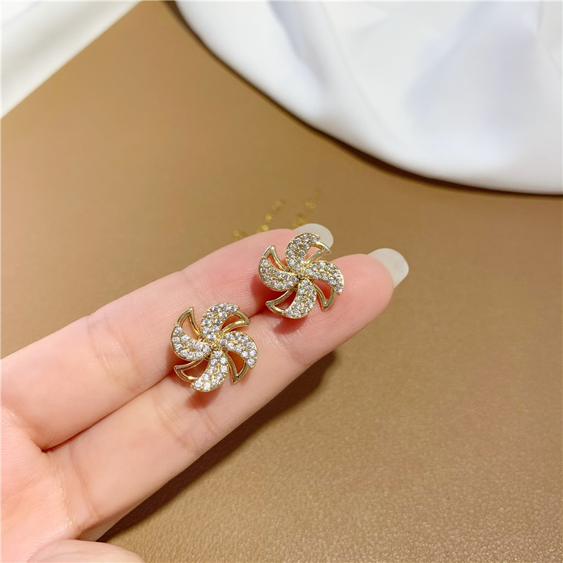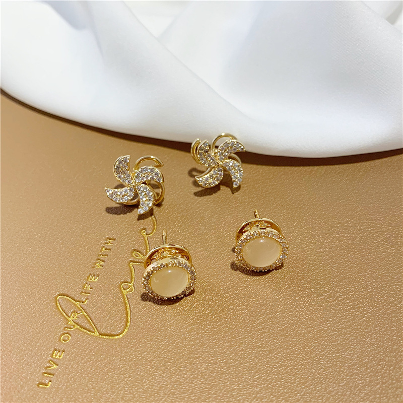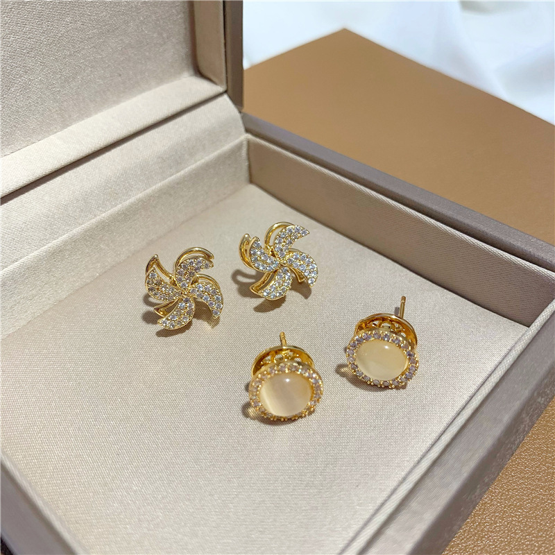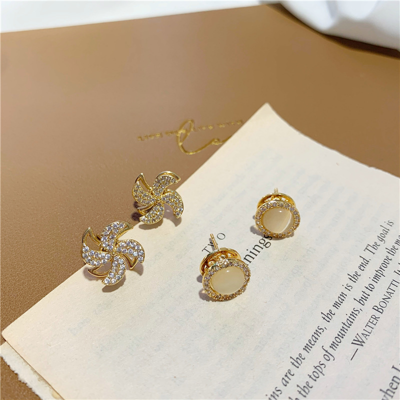 s925银针可旋转猫眼石耳坠耳环 ins小众设计微镶钻风车耳饰耳钉女 English | 投诉