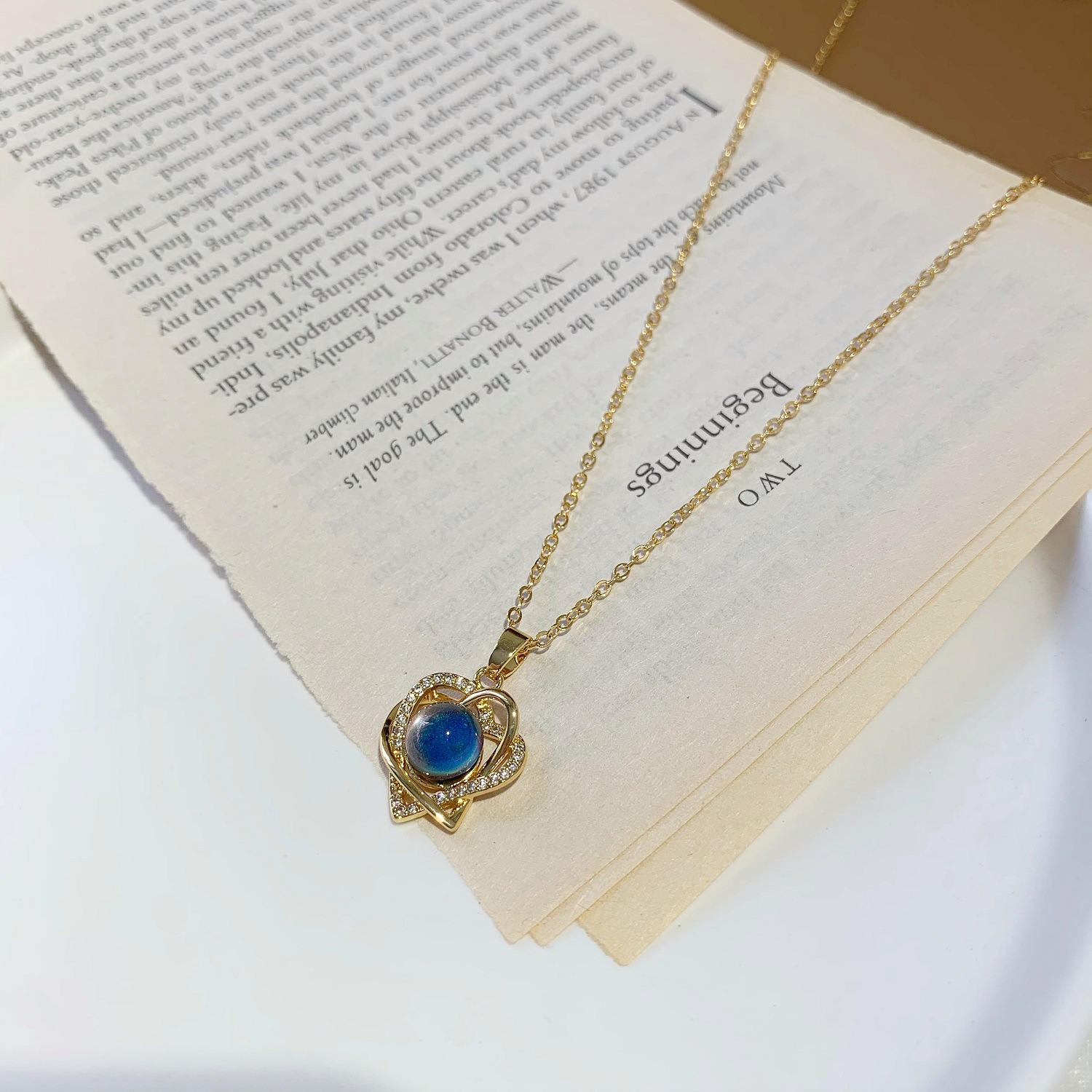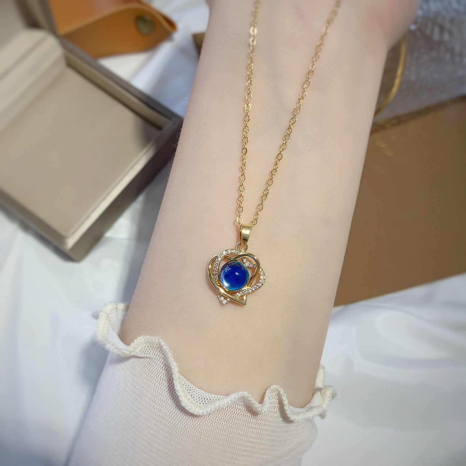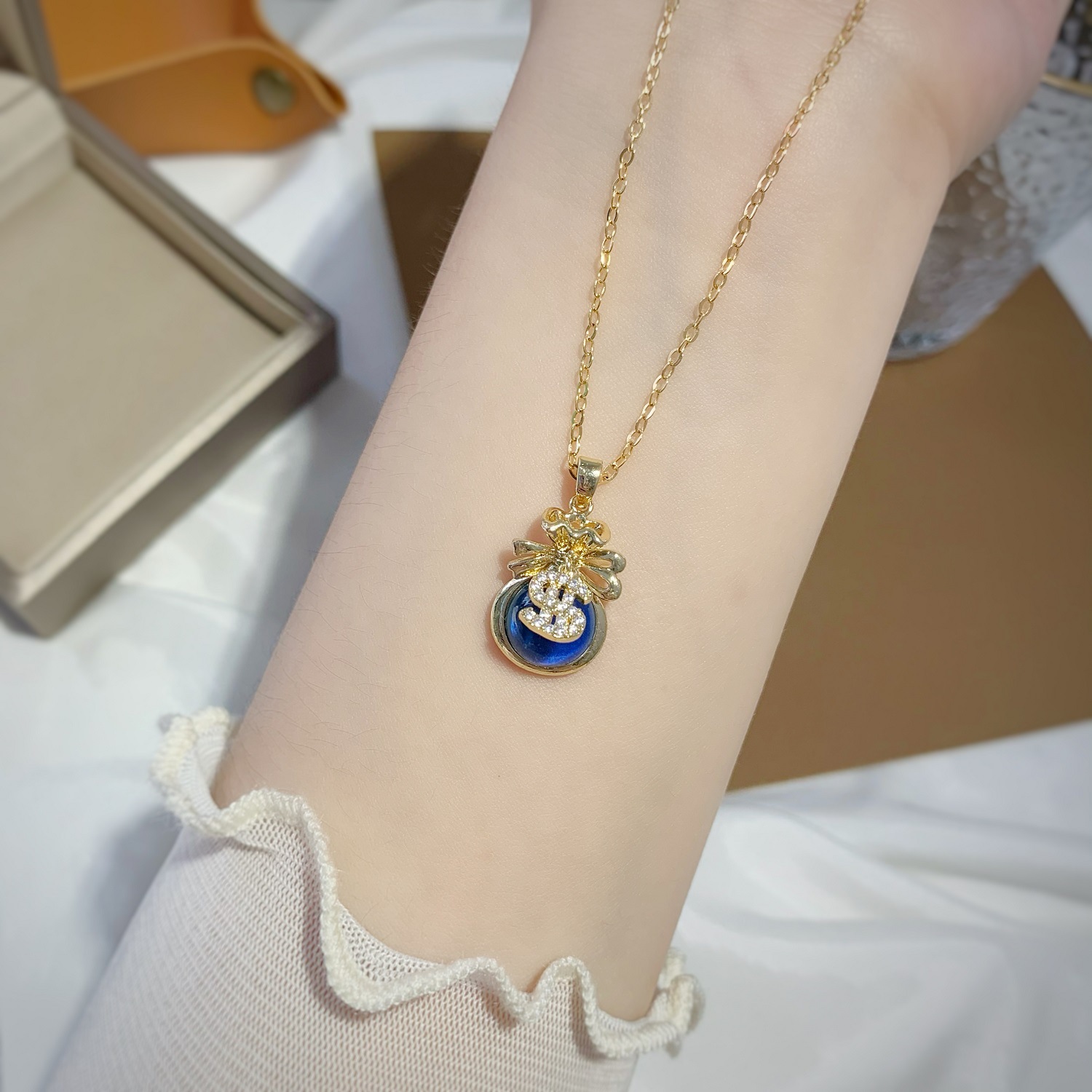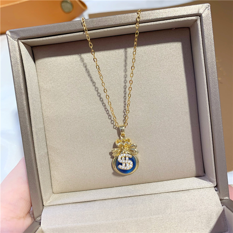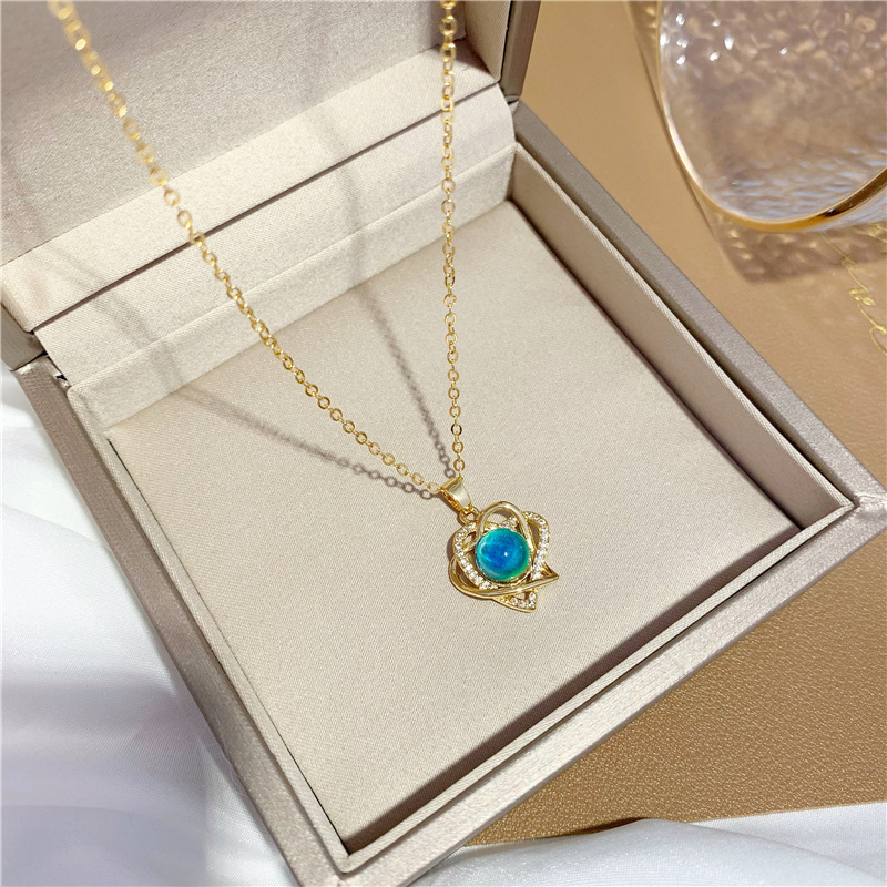 钱袋爱心镶钻变色石吊坠锁骨颈链 久不掉色越南沙金水晶项链女夏 English | 投诉
