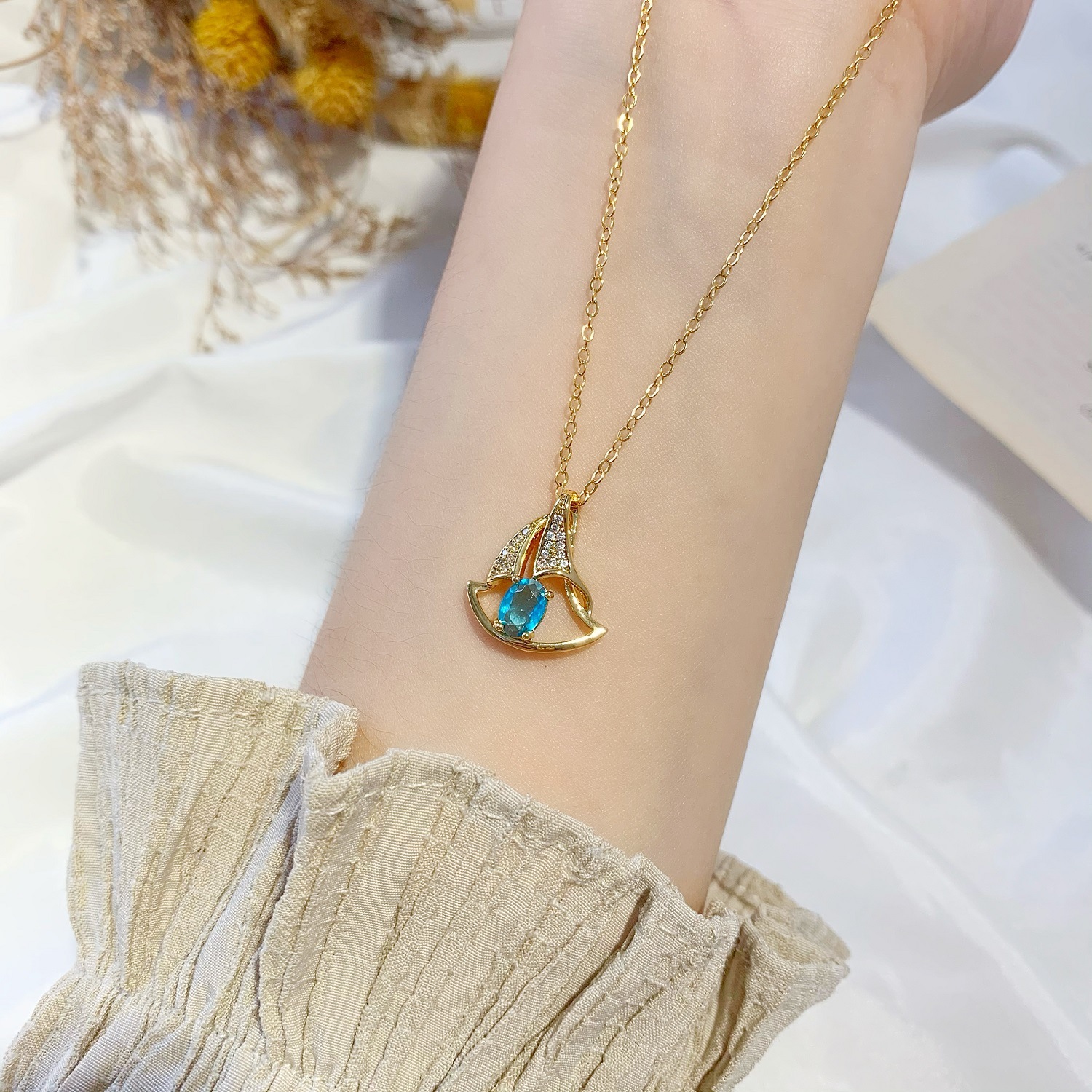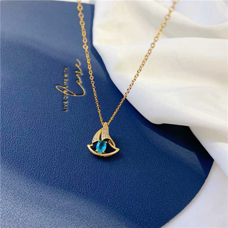 ins小众设计镶钻小帆船吊坠锁骨颈链 仿18k黄金项链女夏久不掉色 English | 投诉