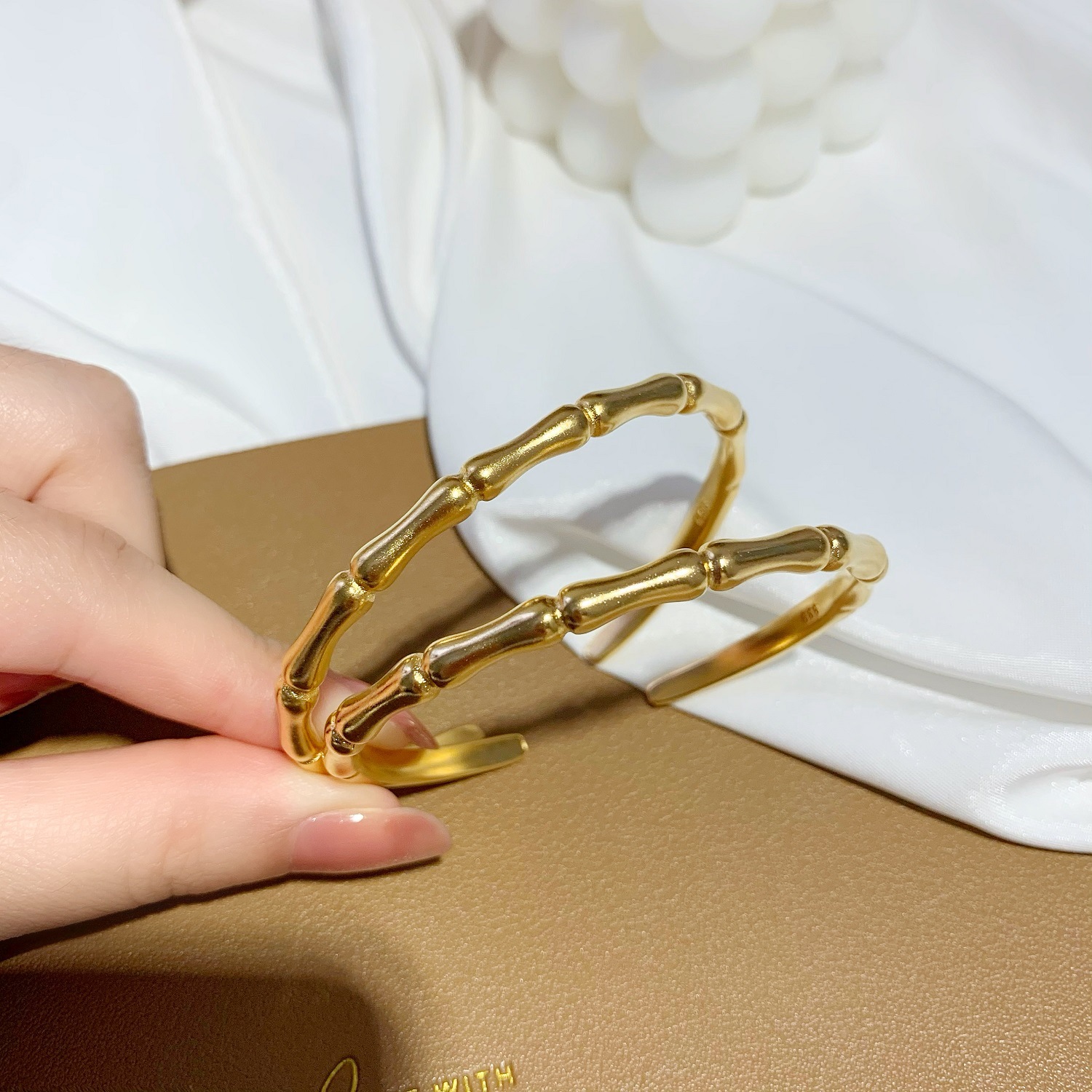材质: 铜 风格: 时尚OL 货号: SZ1114 加印LOGO: 可以 品牌: 其他 样式: 女式 造型: 竹节 处理工艺: 真空镀真金 适用送礼场合: 婚庆,生日,旅游纪念,节日,展销会,广告 加工定制: 是